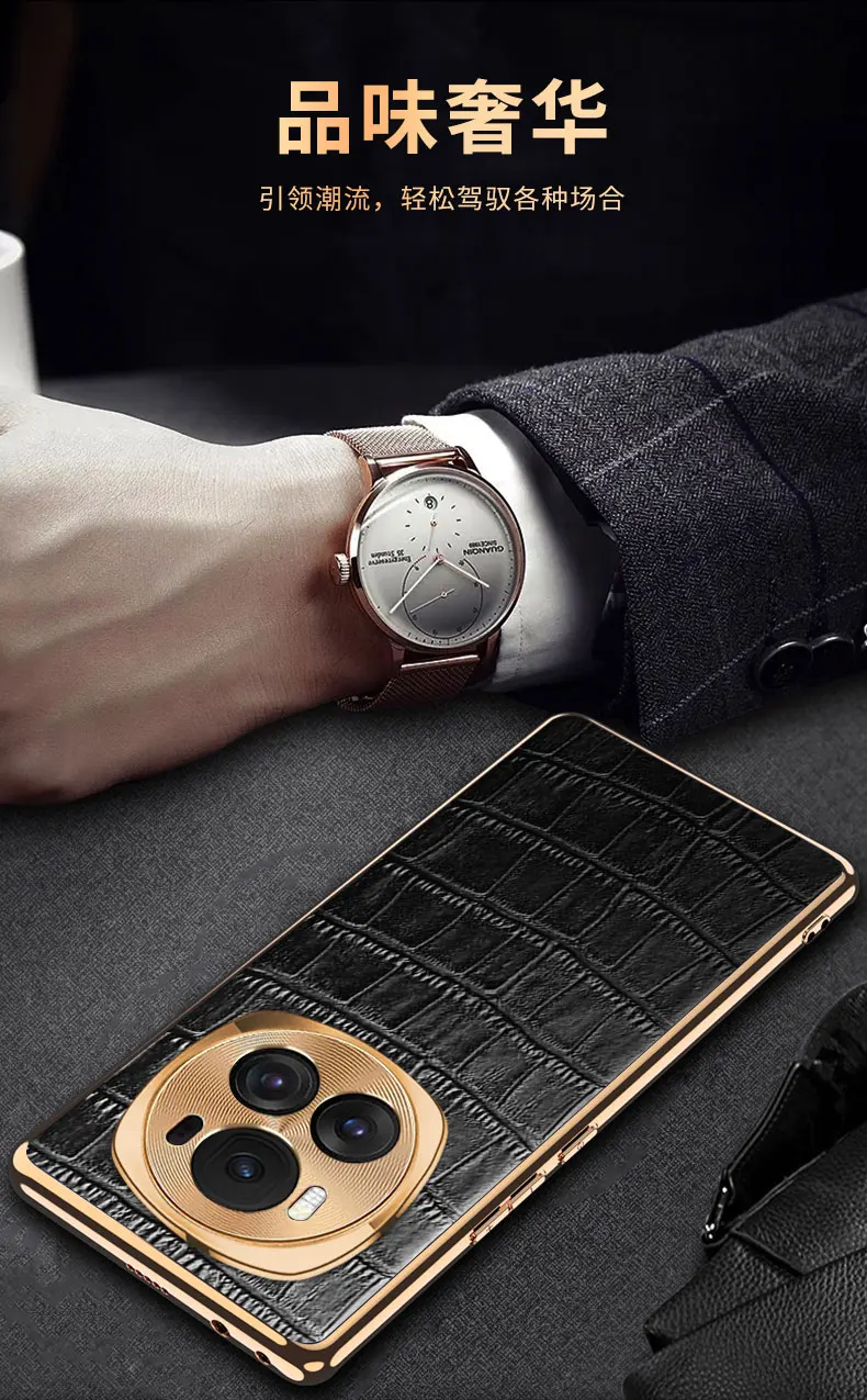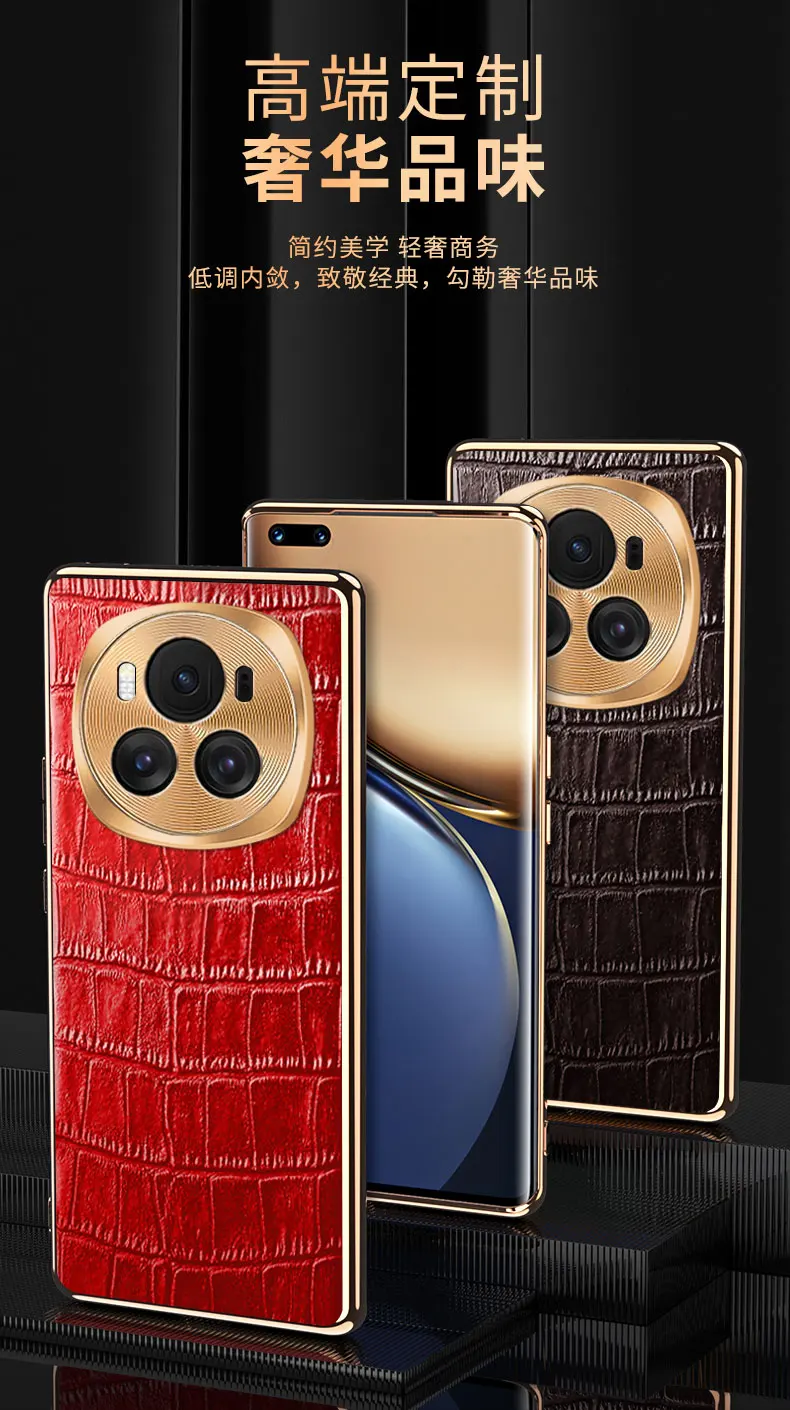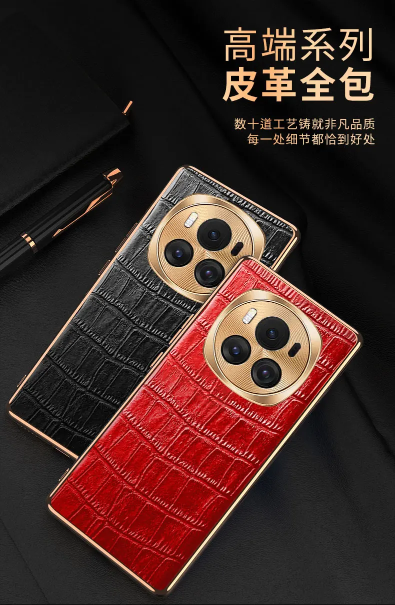 Funda de teléfono móvil para Honor Magic6 Pro, protección de lente, patrón de cocodrilo, funda galvanizada para Huawei Honor Magic 6 Pro, parachoques