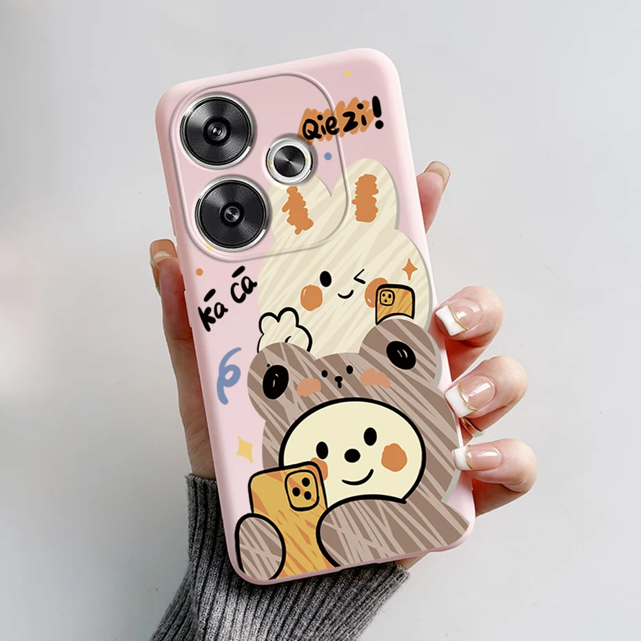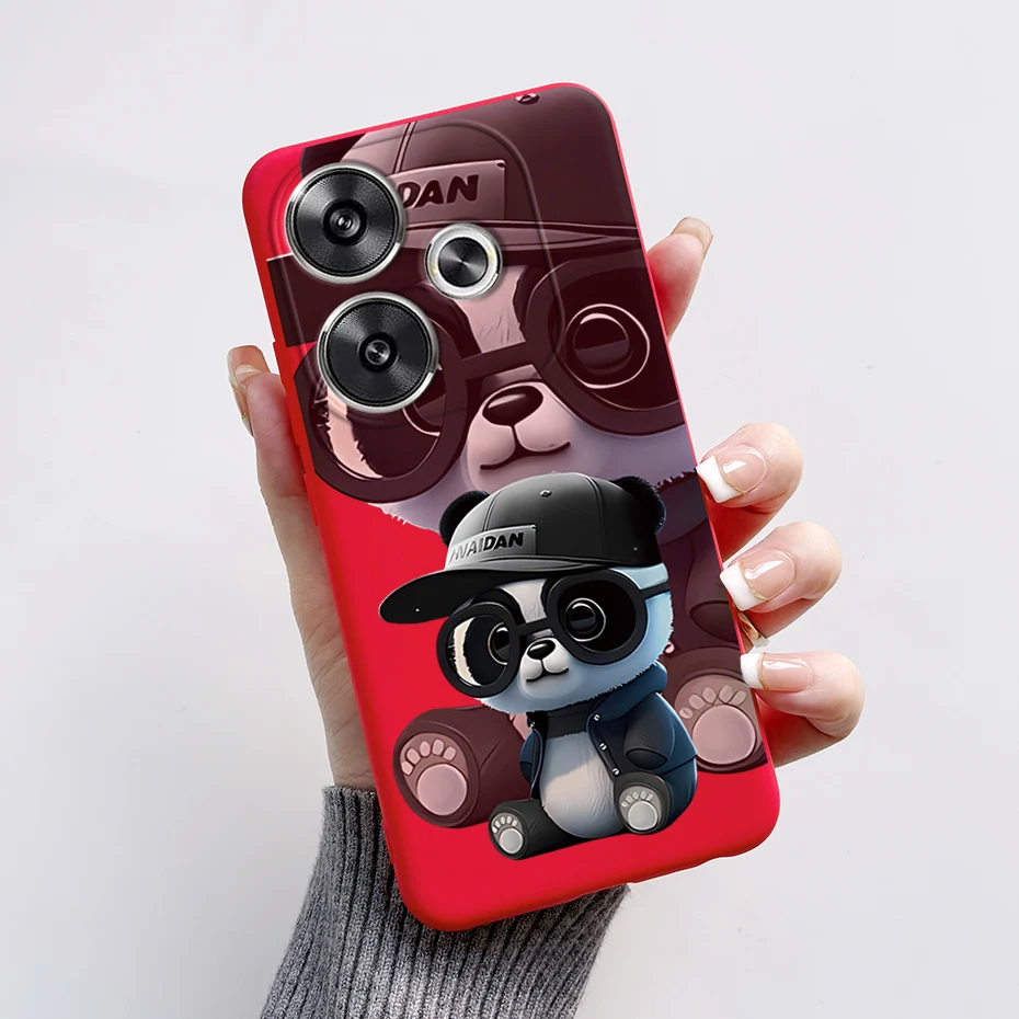 Comprar Funda para teléfono móvil Xiaomi Poco F6 Pro, carcasa suave de silicona líquida con diseño de conejo y Panda