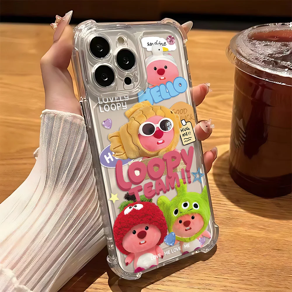 Funda de teléfono de muñeca caliente de Corea Loopy de dibujos animados para iPhone 16 15 14 13 12 11 Mini Pro Max X XR XSMax 8 Plus cubierta transparente anticaída