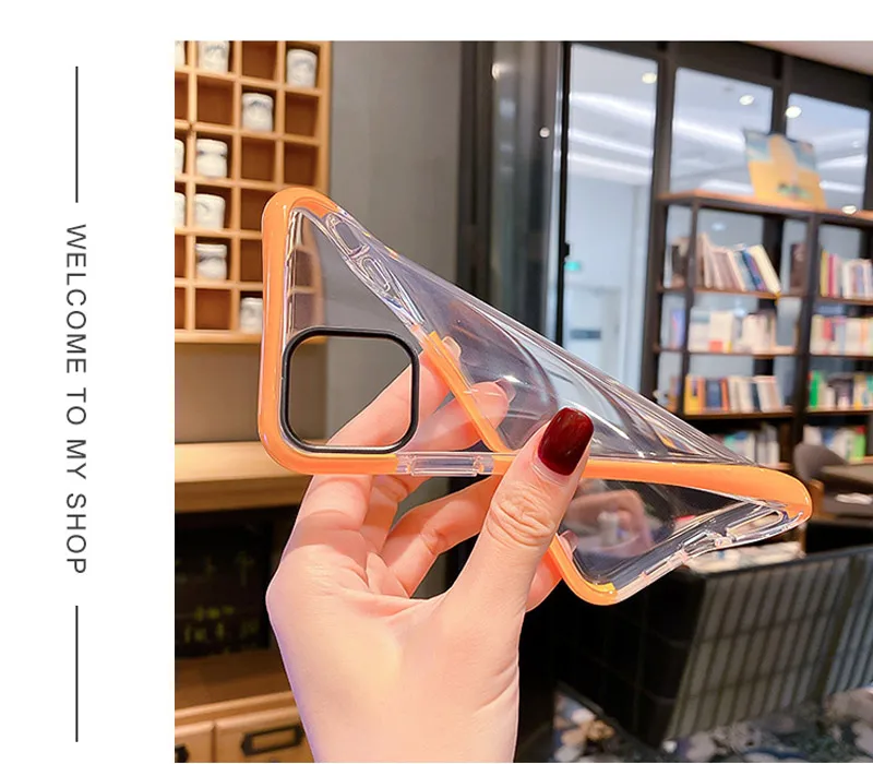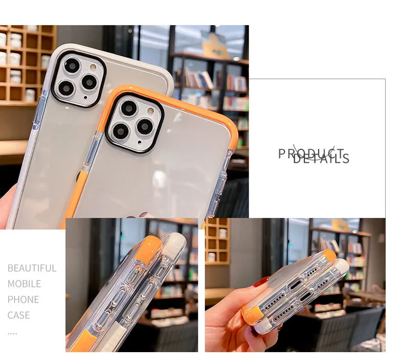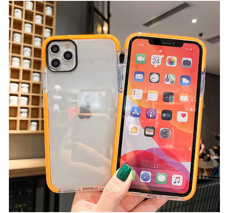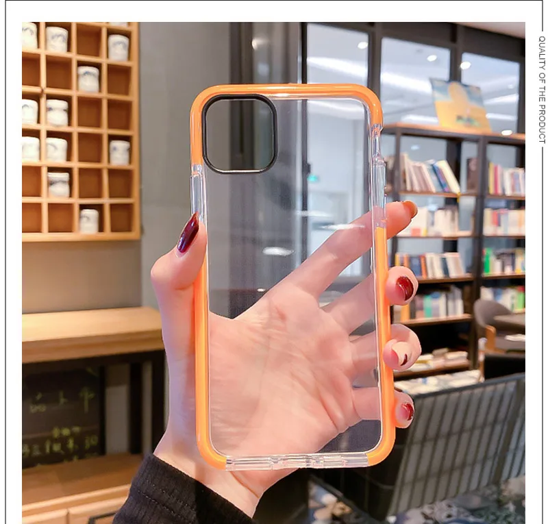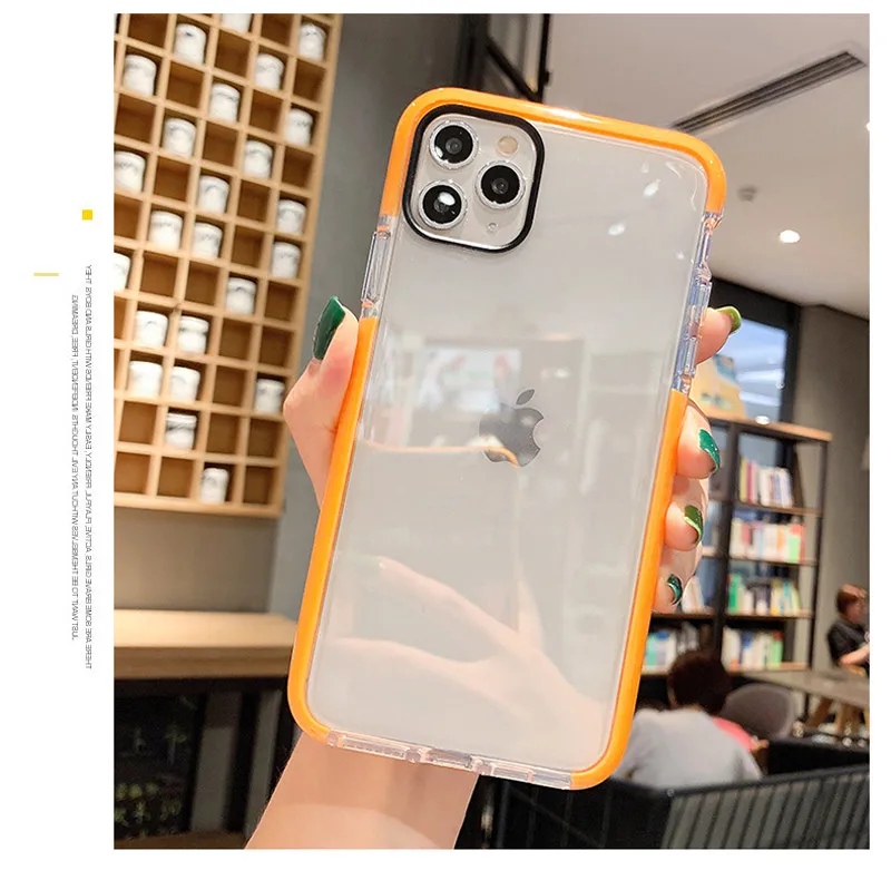 Comprar Funda de teléfono naranja a prueba de golpes para iPhone 11 13 12 14 Pro Max XR XS 7 8 Plus X funda trasera transparente con marco de Color caramelo suave