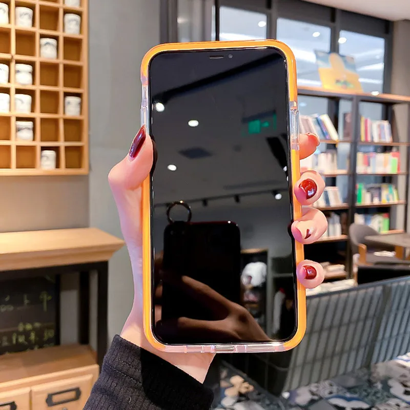 Funda de teléfono naranja a prueba de golpes para iPhone 11 13 12 14 Pro Max XR XS 7 8 14 Plus X, funda trasera transparente suave con marco de Color caramelo