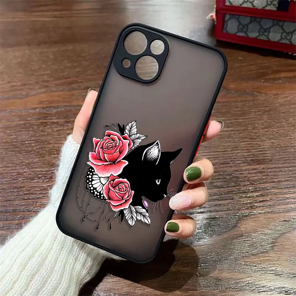 Negro Aggrieved Gato traviesoFunda de teléfono mate para HUAWEI P40 MATE 20 30 P SMART NOVA 3I 4 7I 6 Y70 Y70S Y6P Y9 HONOR 20 70 90 X7 X8Funda de siliconaCapa de concha de bricolajeFunda