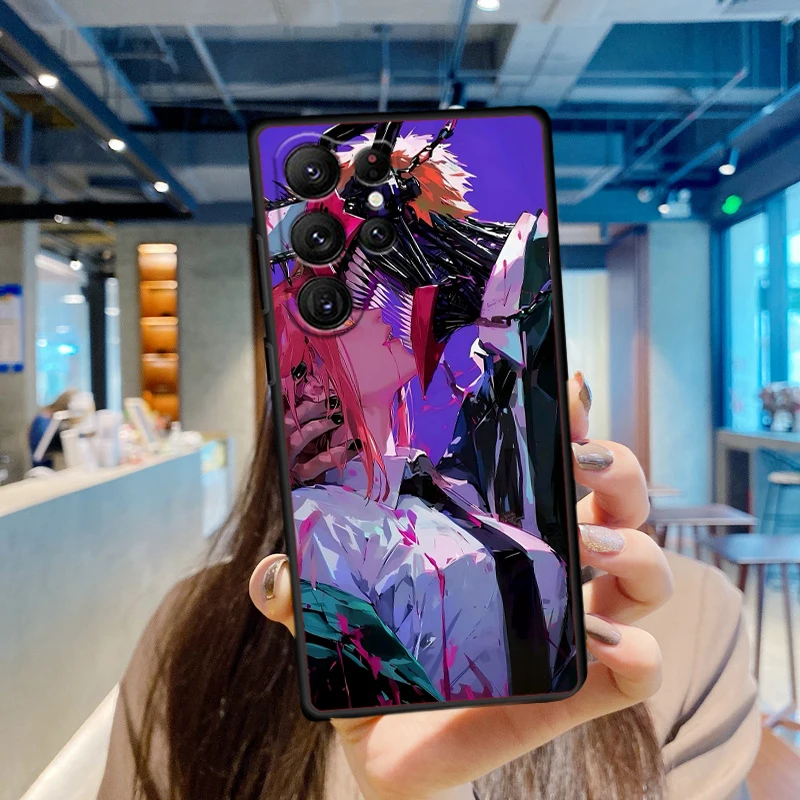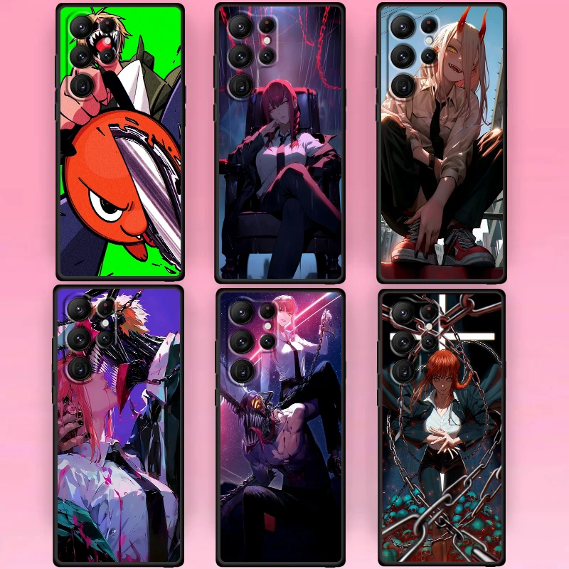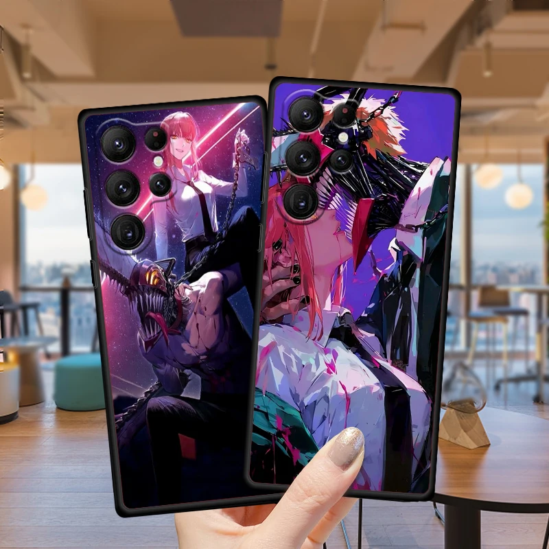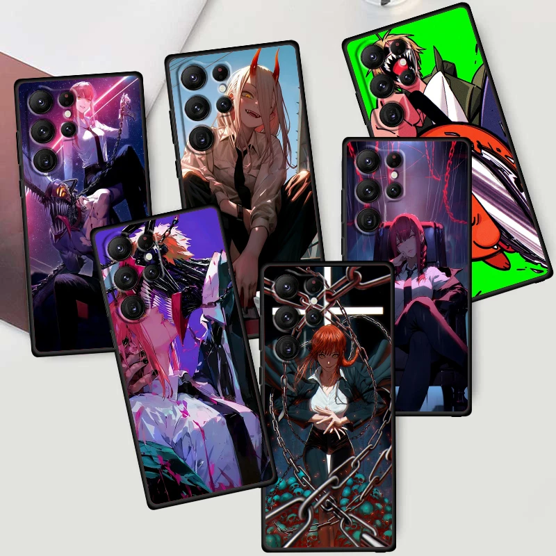 Comprar Funda de teléfono negra de Arte de Anime de película de hombre de motosierra para Samsung Galaxy S24, S23, S22, S21, S20 FE, S10, S10E Plus, Ultra Pro Lite, 5G