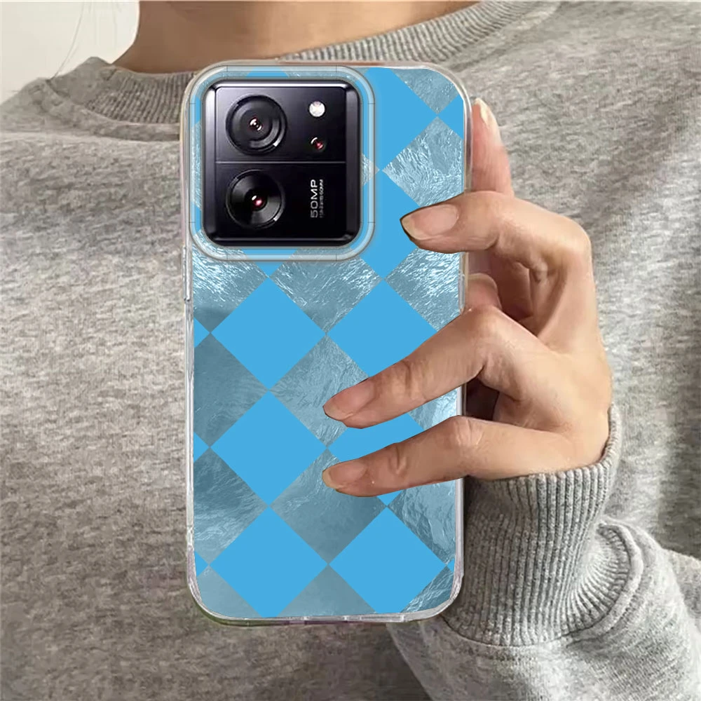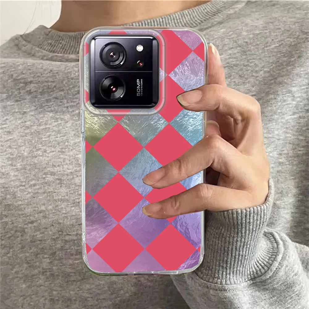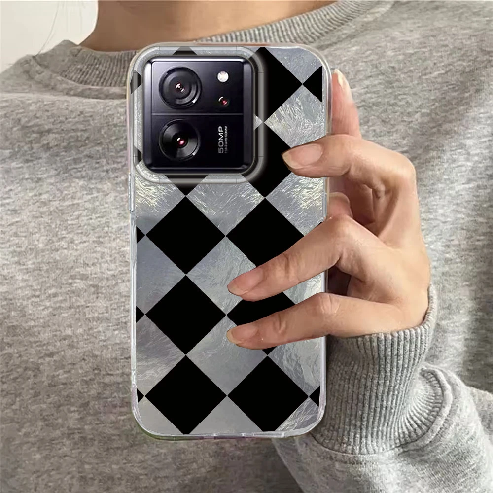 Funda de teléfono negra a cuadros para mujer y niña, funda de TPU para Xiaomi 13T 14T 11 Lite NE Poco X5 M6 Pro X6 X7 X3 Pro NFC C65 C61 M5S