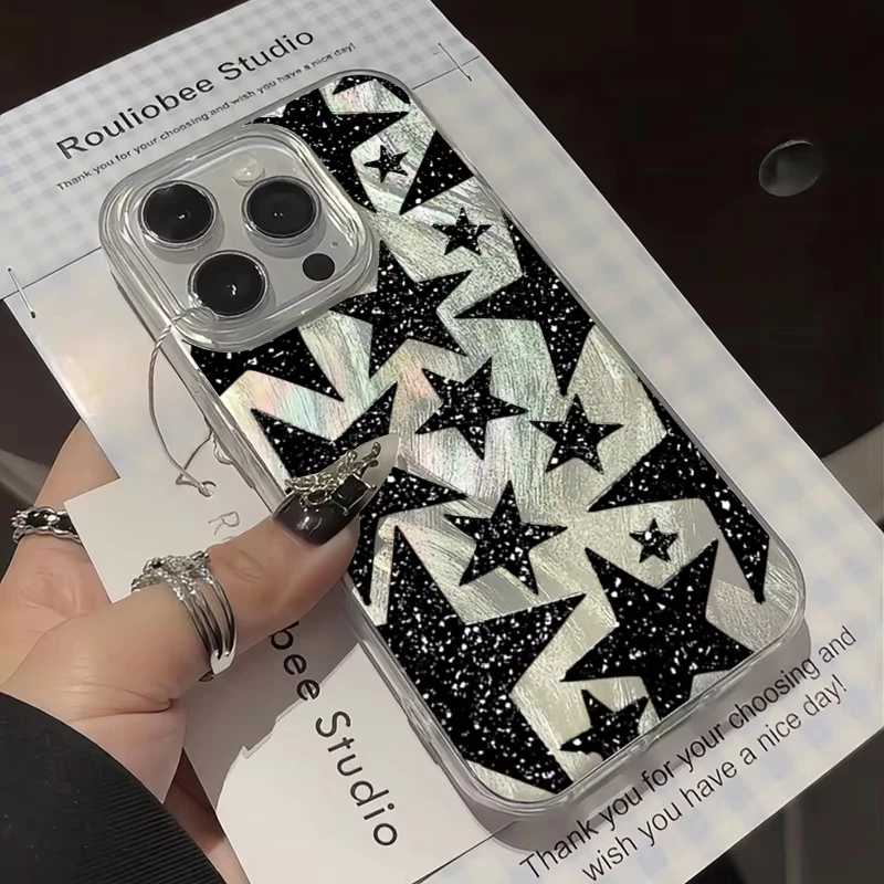 Funda de teléfono negra con diseño de estrella de cinco puntas para iPhone 17 Pro Max 16 16E 15 14 13 12 11 XR XS 17 Air 16 Pro, funda trasera a prueba de golpes