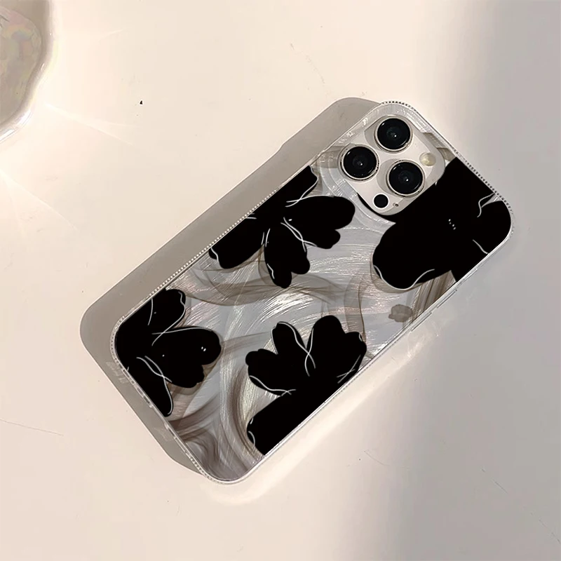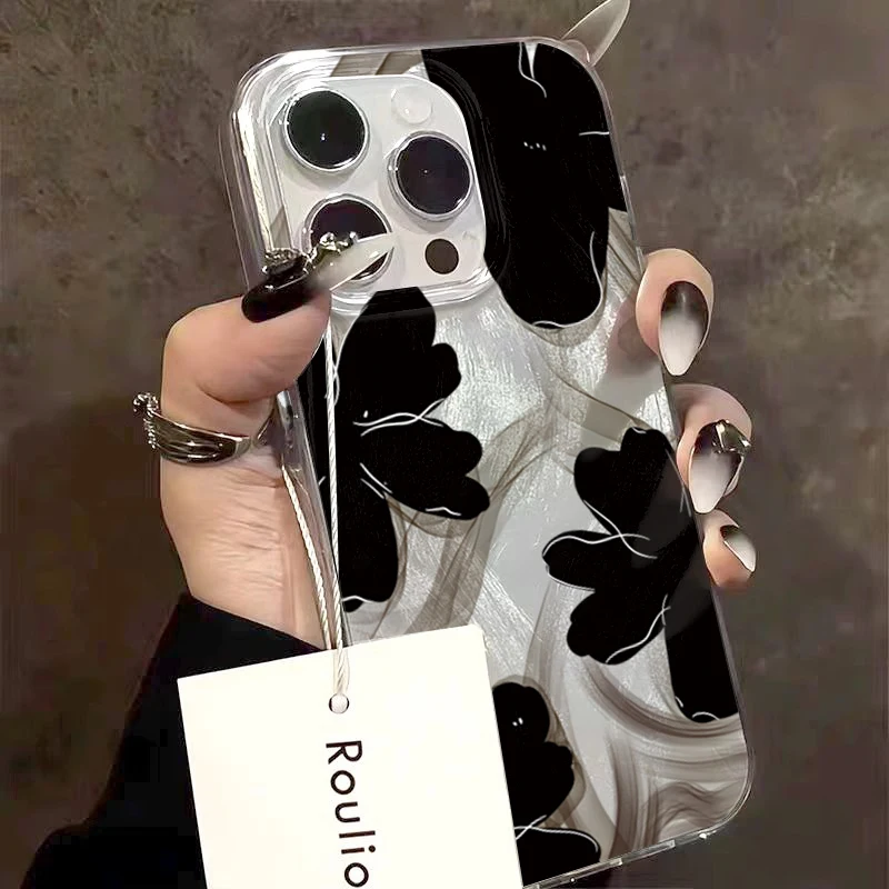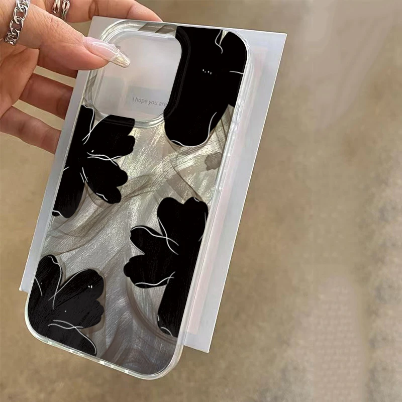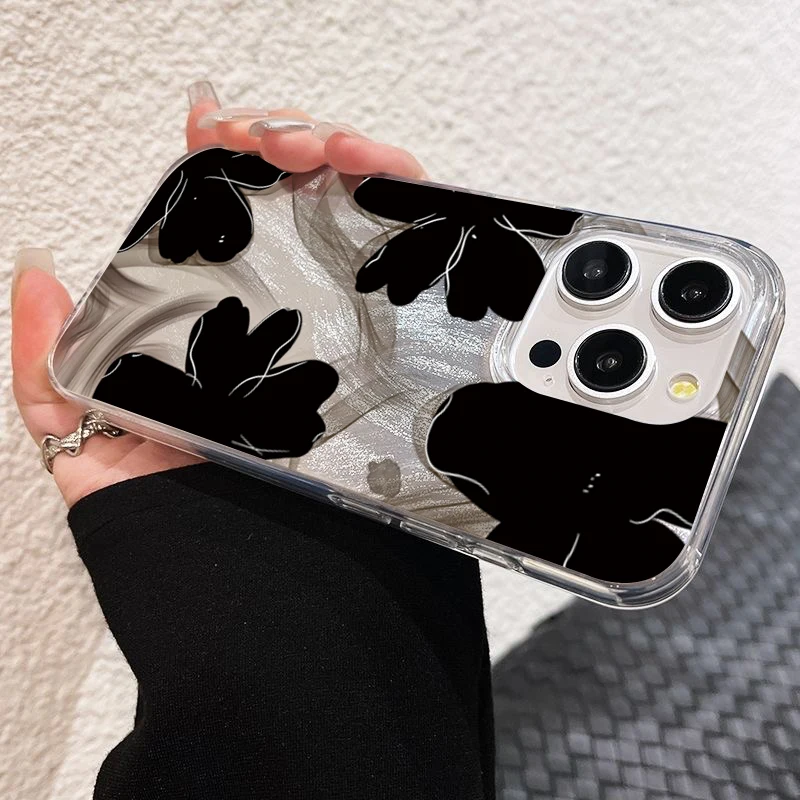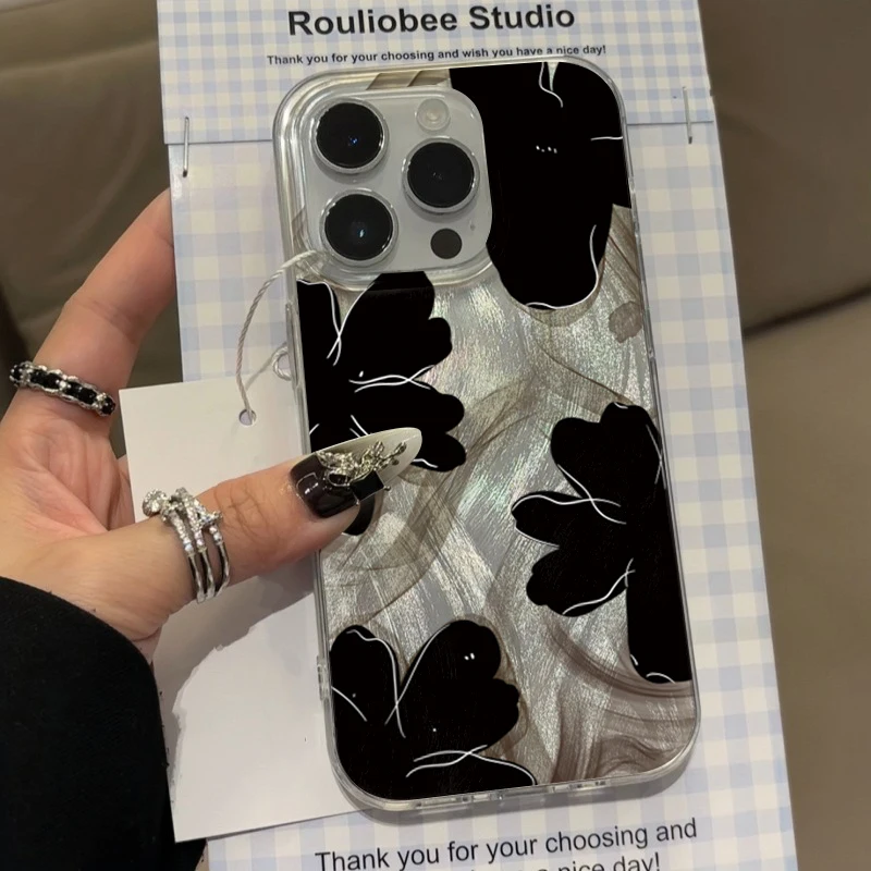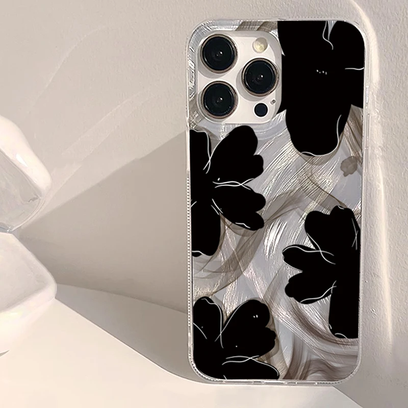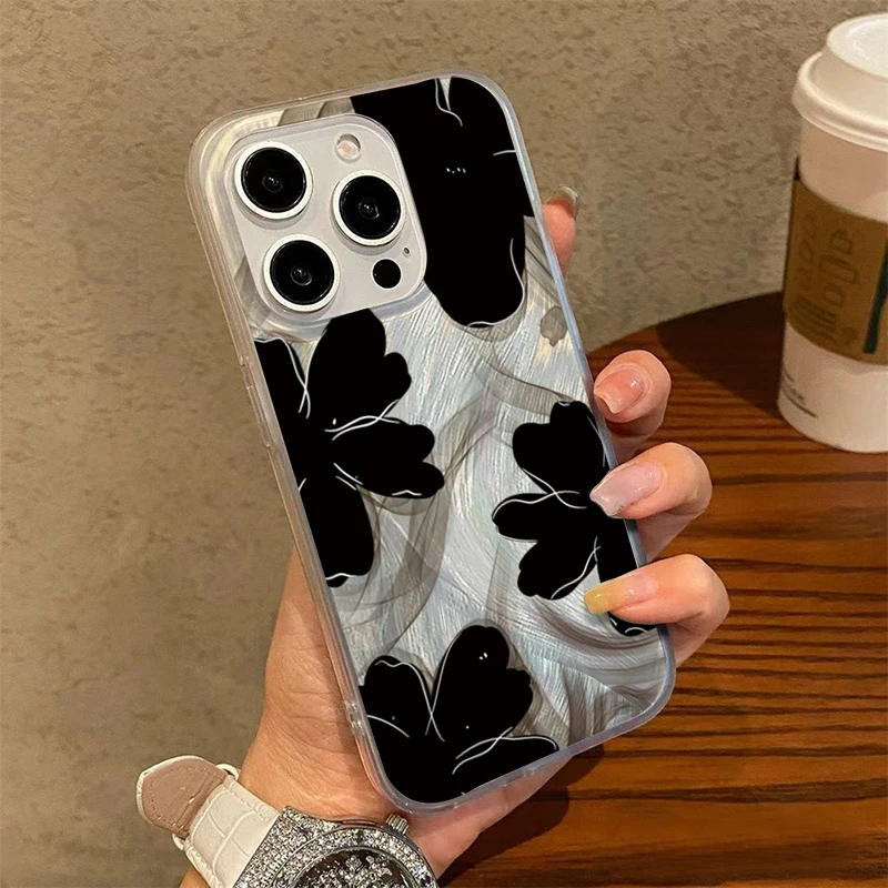 Comprar Funda de teléfono negra con diseño de flores para Samsung Galaxy S25 S24 S23 S22 Ultra Plus S21FE A56 A15 A55 A54 A53 A52 A35 5G