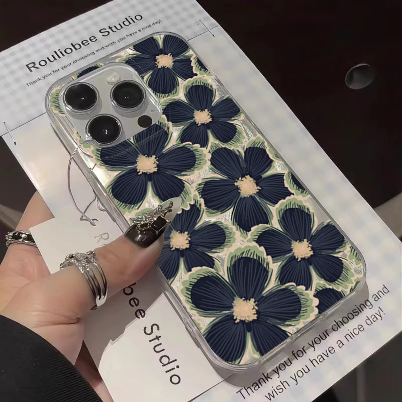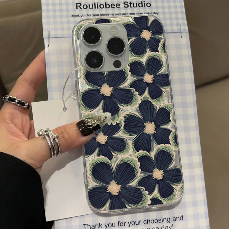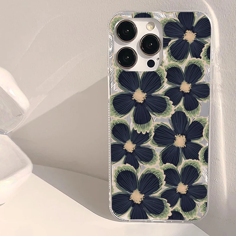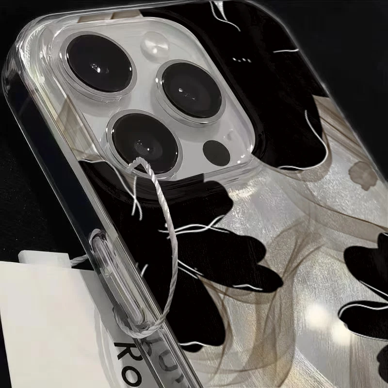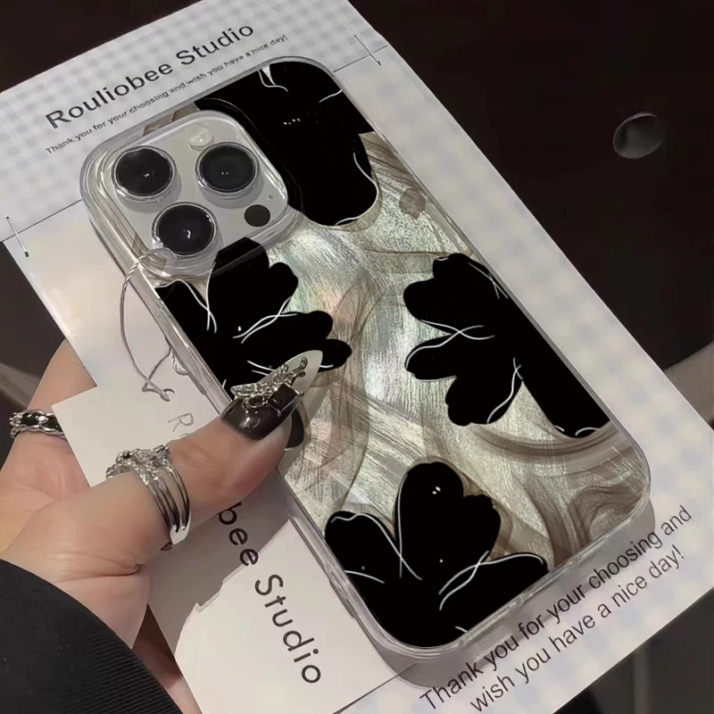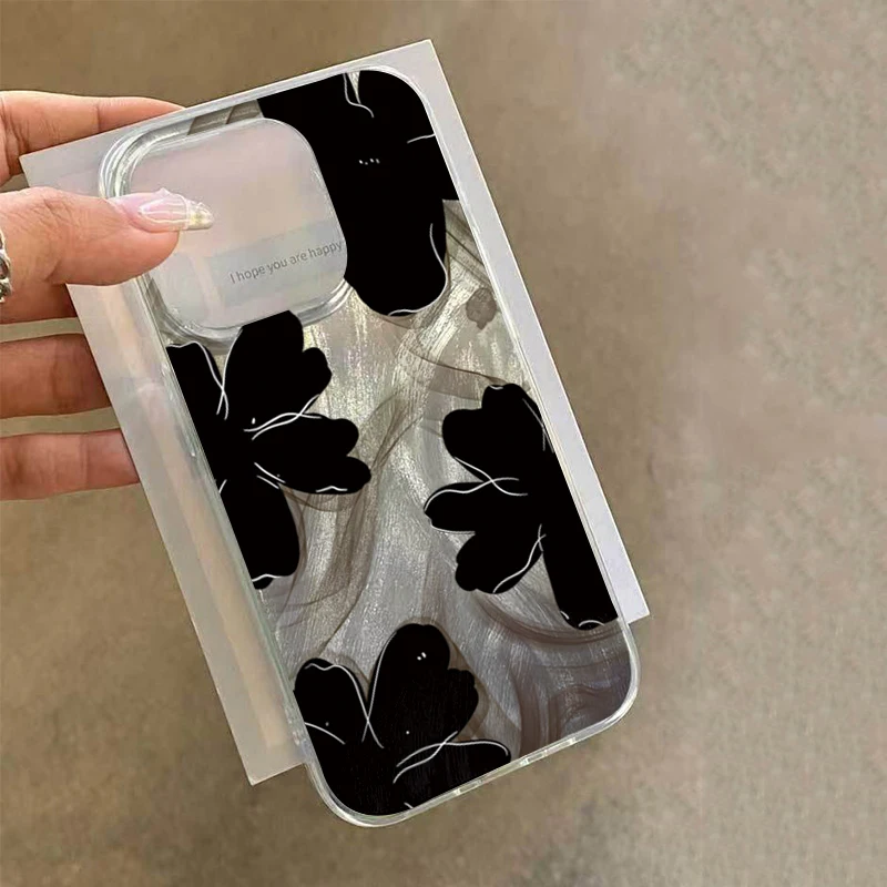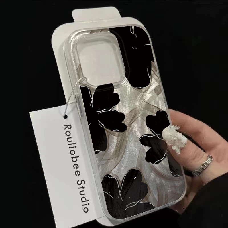 Comprar Funda de teléfono negra con diseño de flores para Samsung Galaxy S25 S24 S23 S22 Ultra Plus S21FE A56 A15 A55 A54 A53 A52 A35 5G