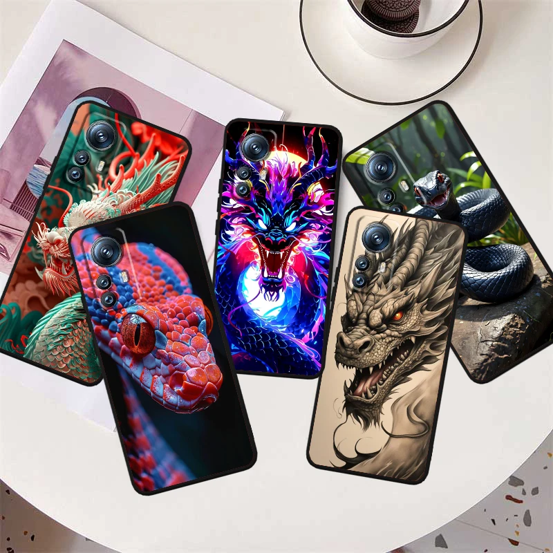 Funda de teléfono negra con diseño de serpiente para Xiaomi Mi 14 13T 13 12T 12 11T 11i 11 10T 10 Pro Lite Ultra 5G