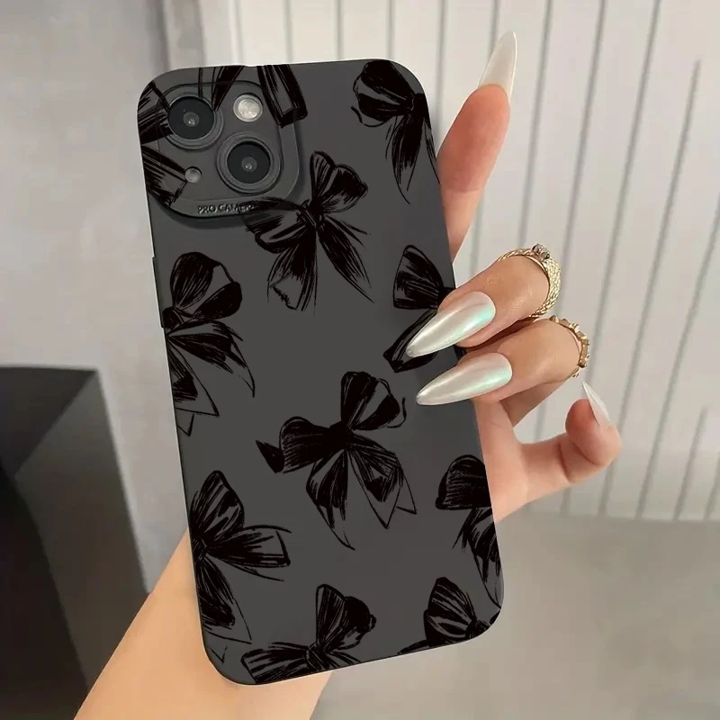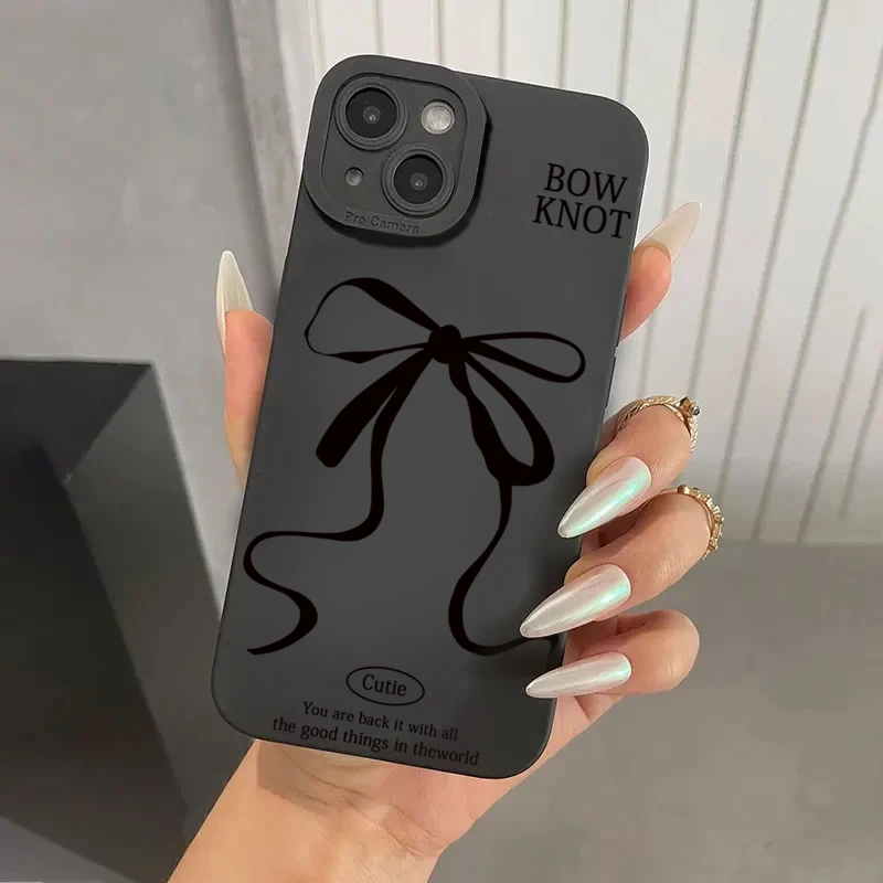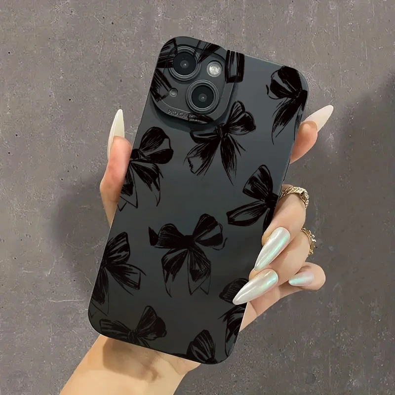 Funda de teléfono negra con lazo grande para Samsung Galaxy S25 S24 S23 S22 S21 Ultra Plus FE A16 A06 A26 A54 A33 A34 funda suave a prueba de golpes