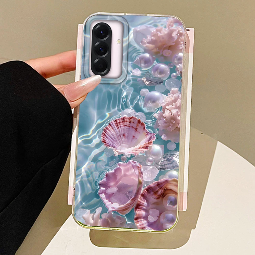 Funda de teléfono para niñas con concha de perla oceánica para Samsung Galaxy A55 A56 A36 A26 A16 A53 A06 A14 A24 A34 A54 A15 A25 A35 A12 A07 A17