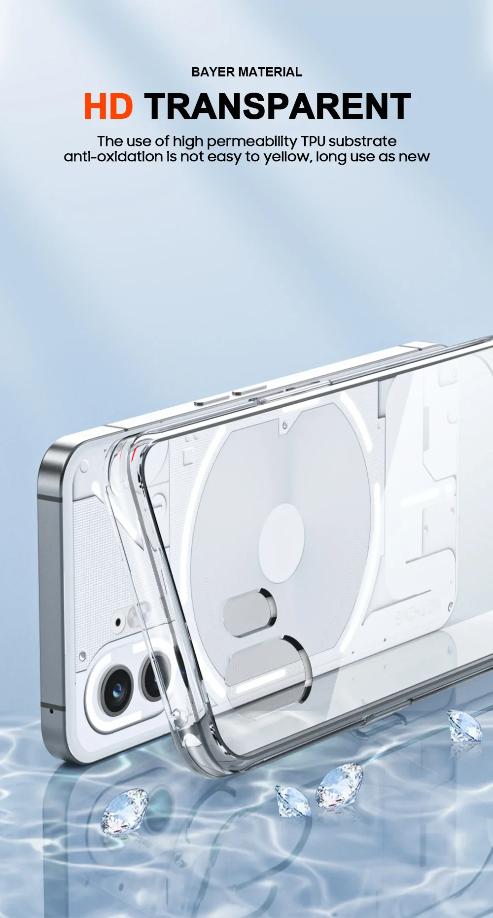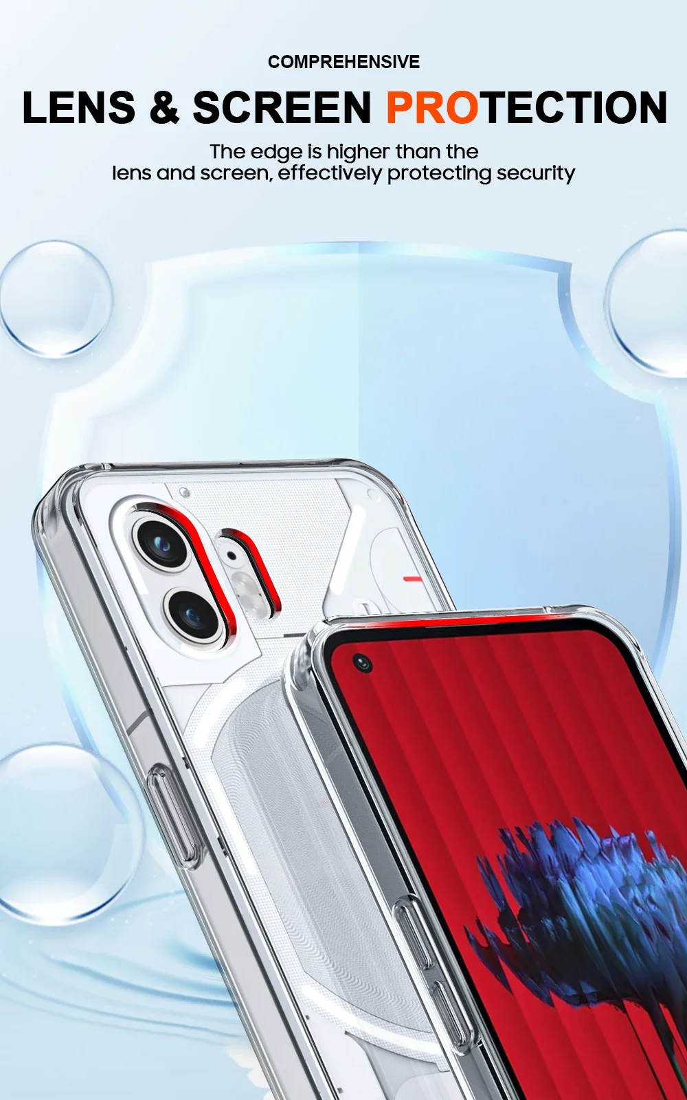 Funda de bolsa de aire para Nothing Phone 2 Funda protectora para Nothing Phone 1 Transparente Suave Antiknock Crystal TPU Shell Fundas BumperCaracterística:Funda transparente: muestra su teléfono, compatible con Nothing Phone 1/2, no bloquea la luz LED en la parte posterior del teléfonoMateriales de primera calidad: pellets de TPU + material de PC de Bayer, todos los materiales y recubrimientos están optimizados para evitar el amarilleamiento con el tiempo.Recortes de botón precisos: fácil de presionar, se ajusta justo sobre el botón para un uso fácil y antipolvoBorde superior: protección completa real, más alto que la lente y la pantalla, evita que la pantalla y la Cámara caigan y se rayen.A prueba de golpes: equipado con tecnología de bolsas de aire anticolisión para dispersar golpes severos, protege su teléfono de golpes accidentalesPaquete:1 funda de teléfono