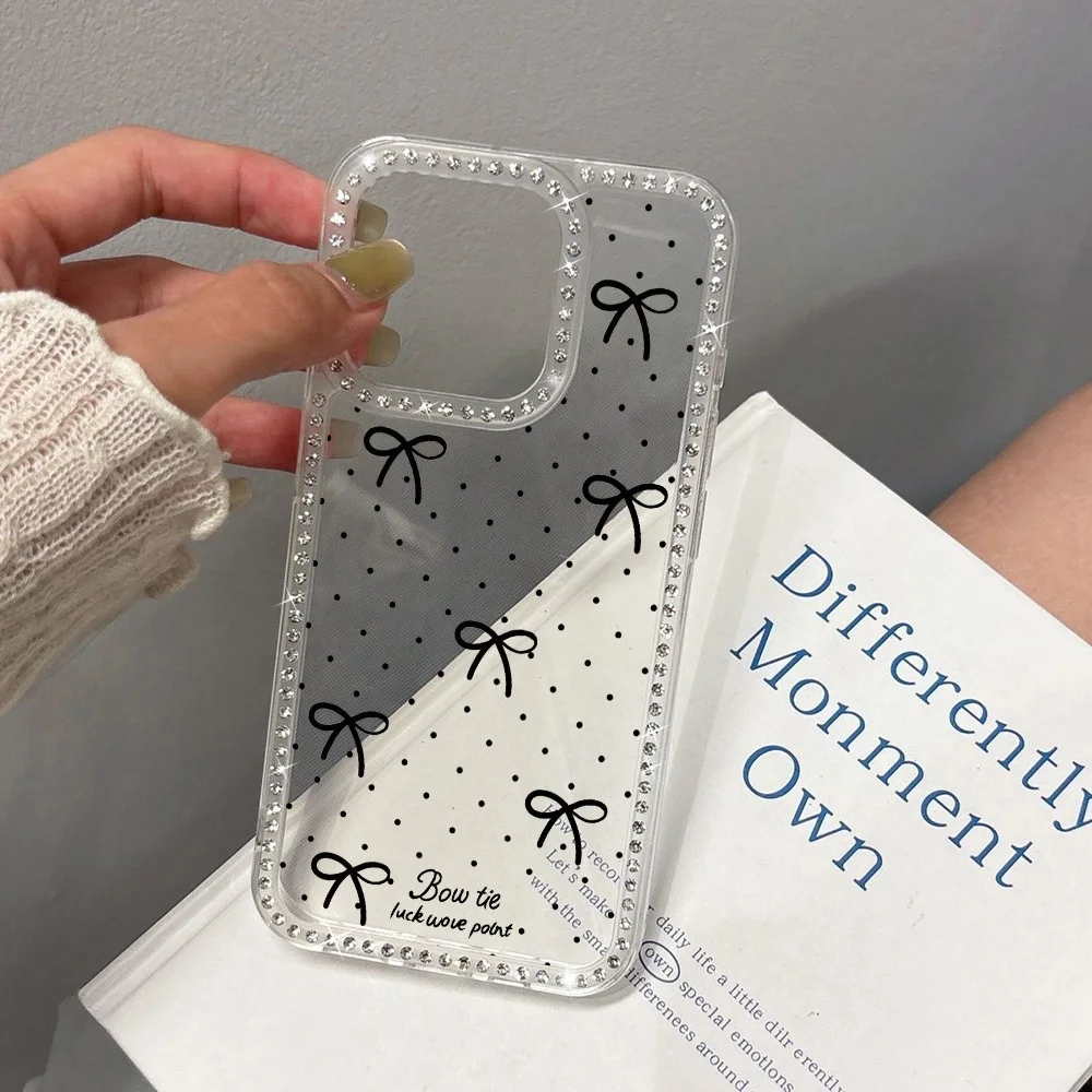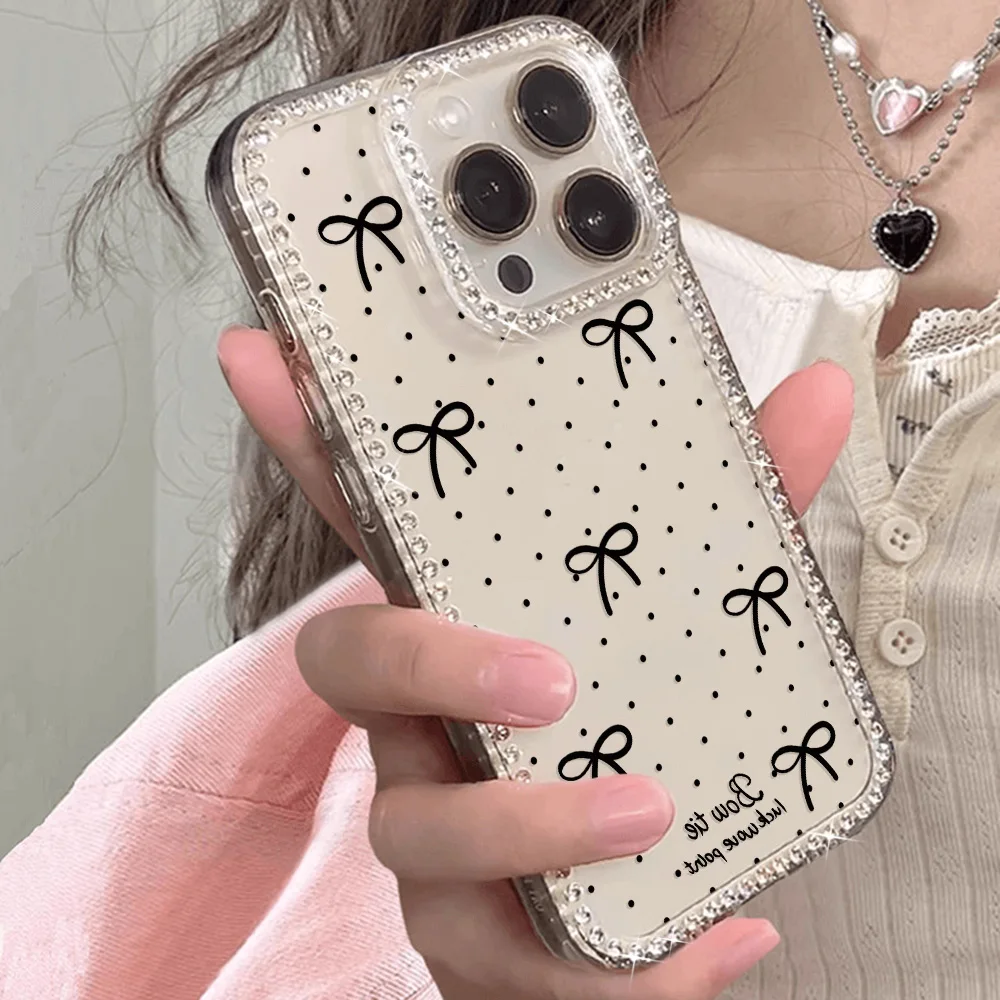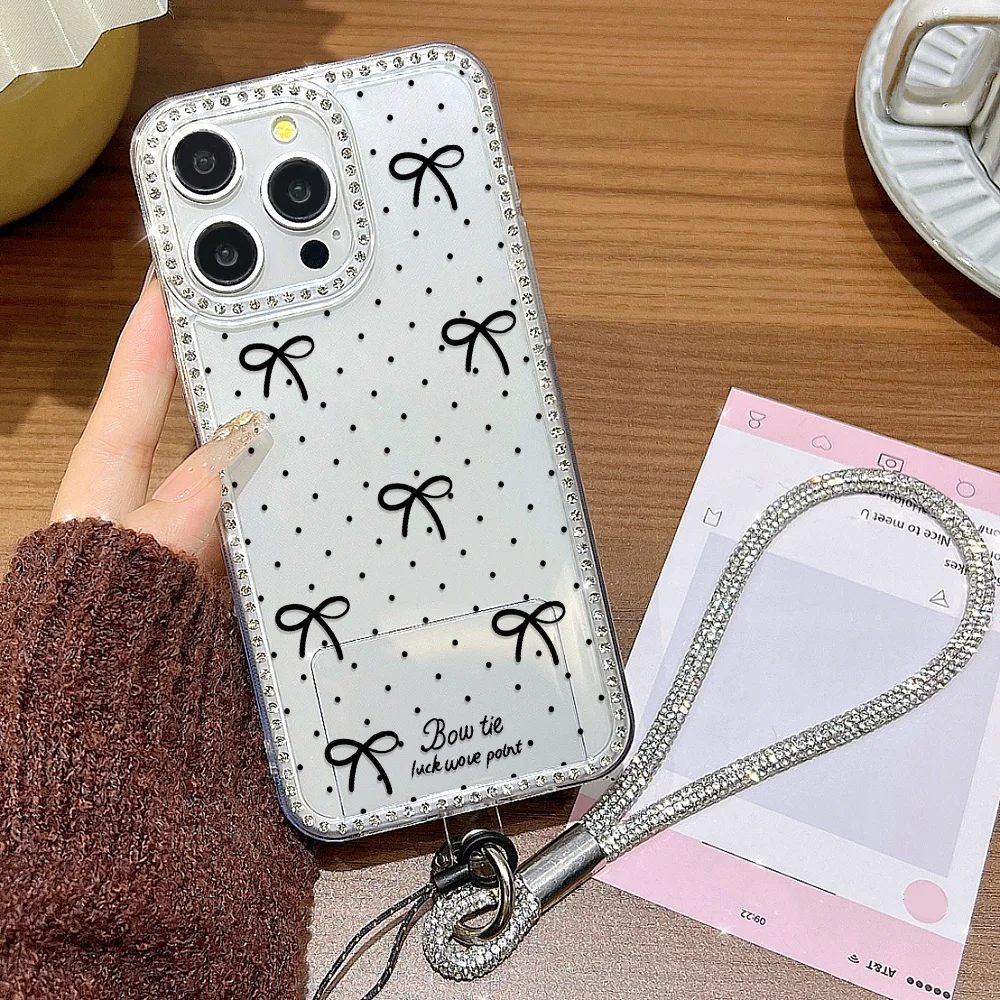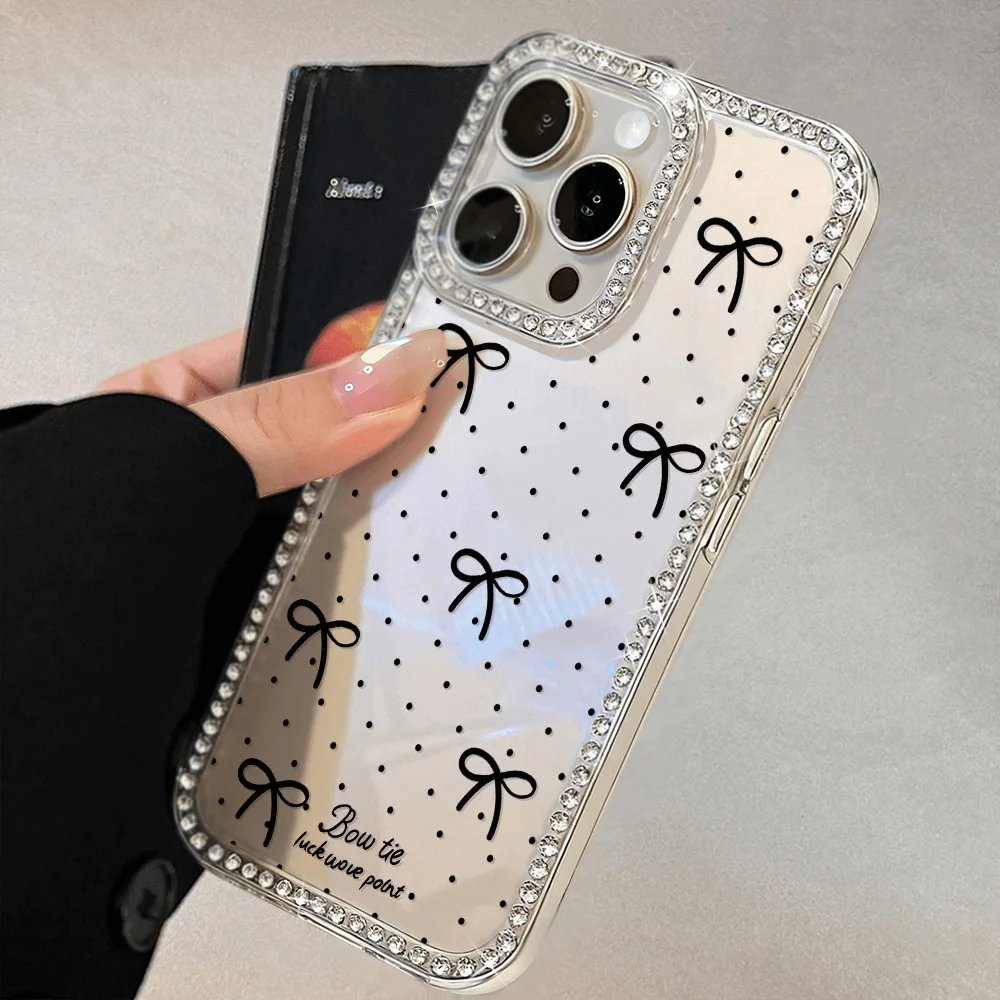 Funda de teléfono con nudo de lazo y cordón de diamante para iPhone 17 16 Pro Max 11 13 15 14 12 Air 17promax, Funda transparente a prueba de golpes