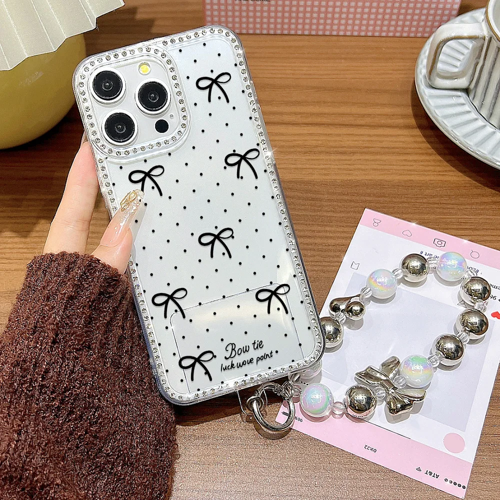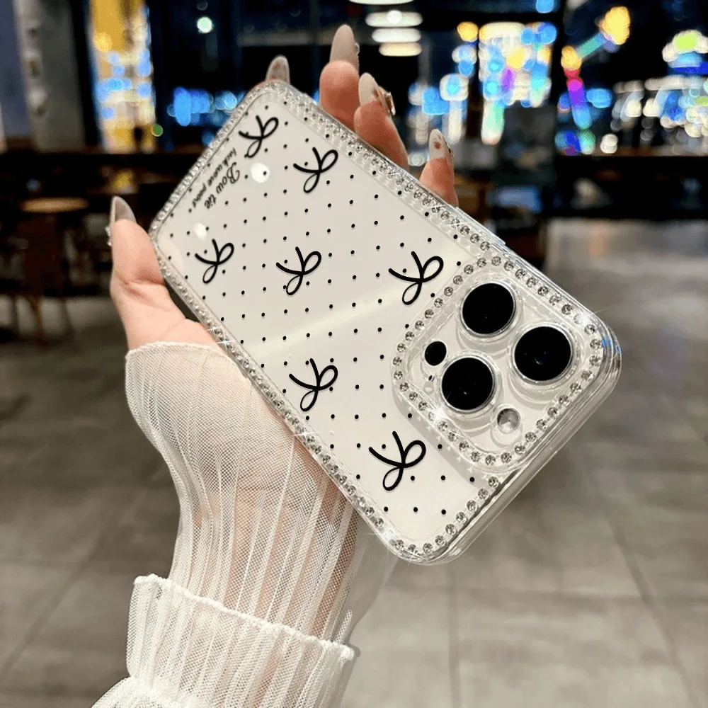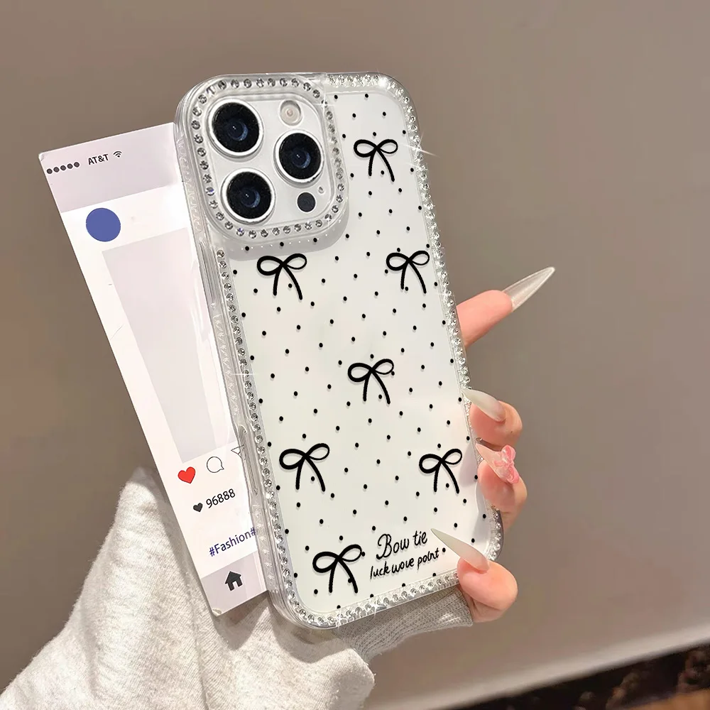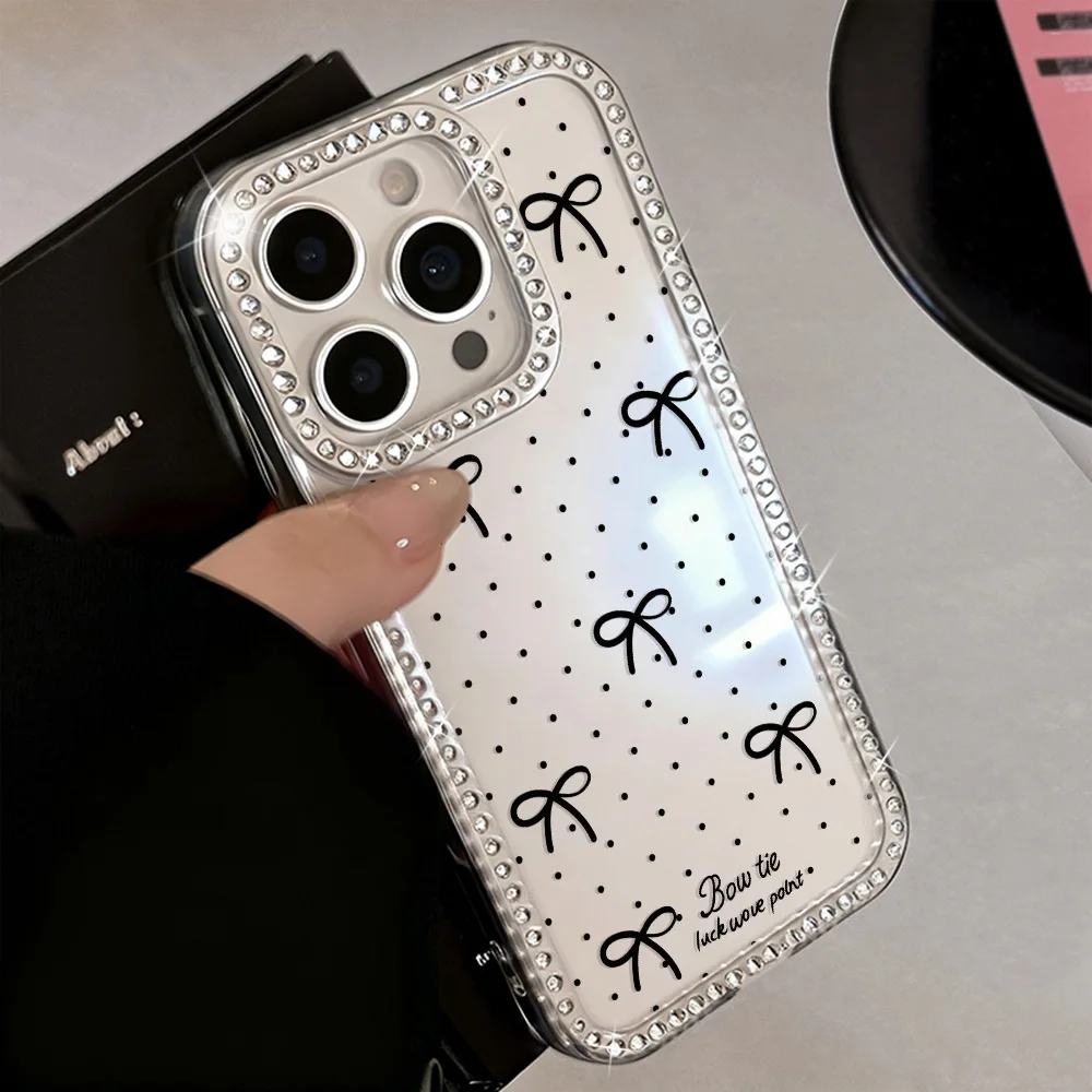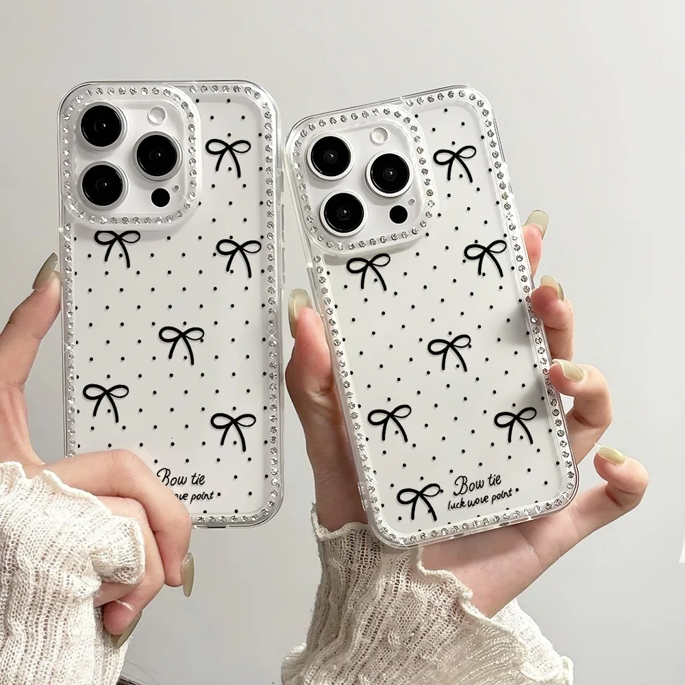 Funda de teléfono con nudo de lazo y cordón de diamante para iPhone 17 16 Pro Max 11 13 15 14 12 Air 17promax, Funda transparente a prueba de golpes