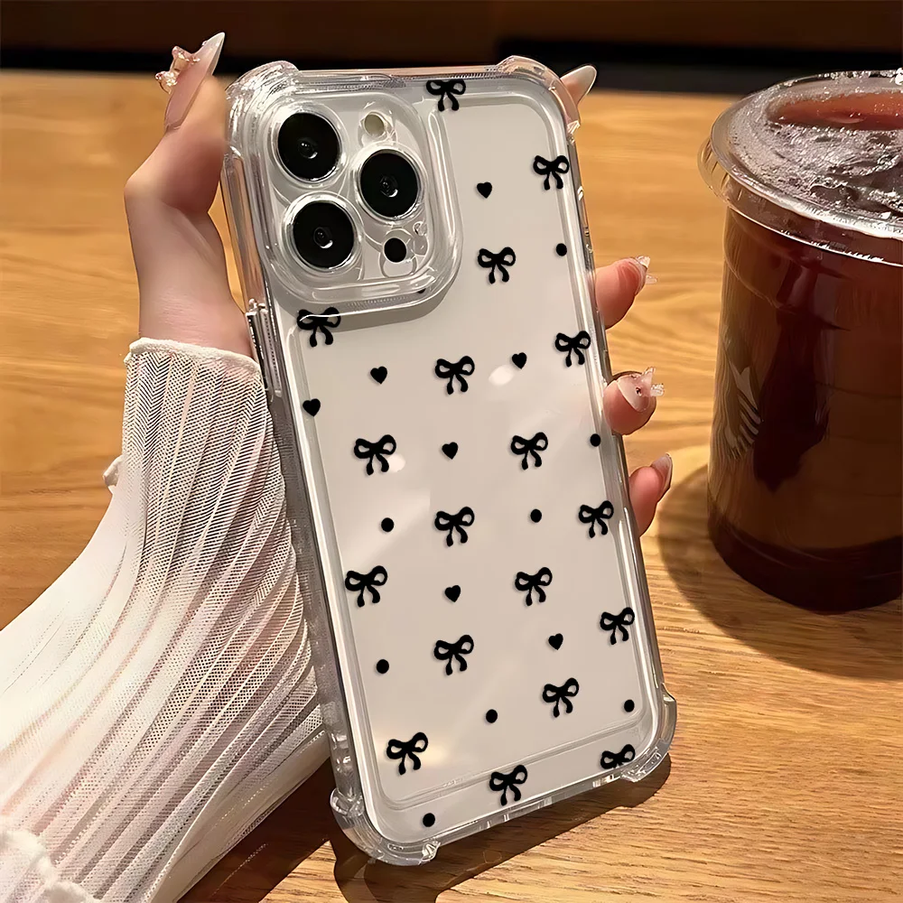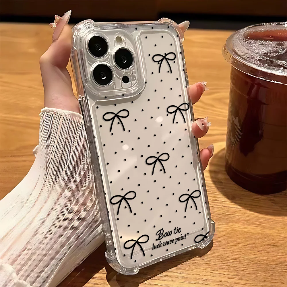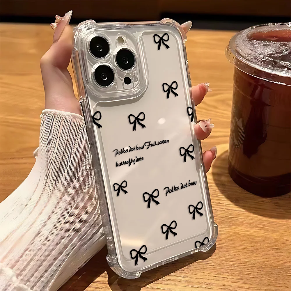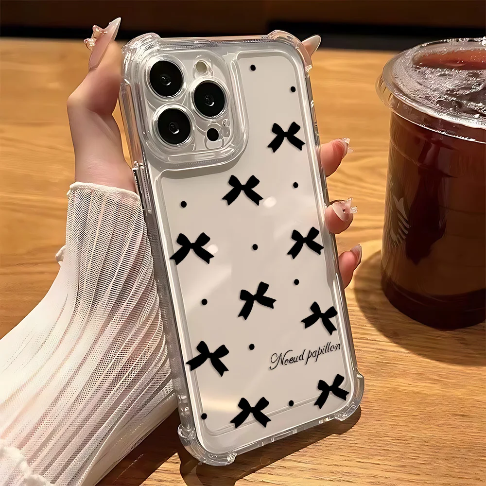 Funda de teléfono con nudo de lazo plateado y láser de lujo para iPhone 16 15 14 13 12 11 Mini Pro Max X XR XSMax 8 Plus, funda transparente anticaída - imagen 4