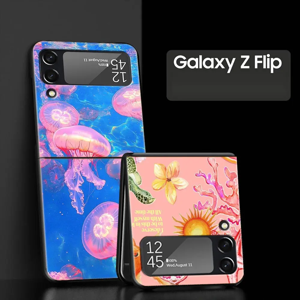 Phone Case For Samsung Galaxy Z Flip3 Flip4 Flip5 Case Shell For Z Flip 3 4 5 6 Black Hard Folding Back Cover