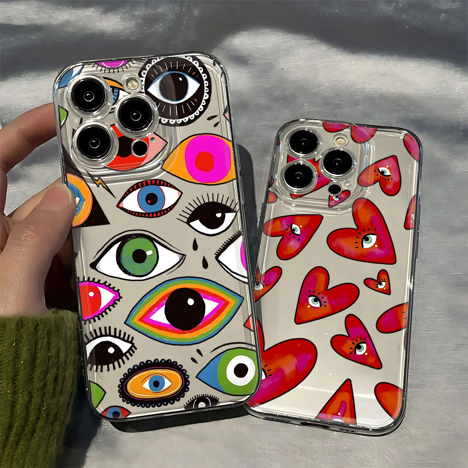 Funda de teléfono de ojo malvado azul de la suerte divertida para Samsung S24, S23, S22, S21, S20, S10 FE, Note20, Note10 Plus, Ultra Lite, 5G, transparente, TPU suave