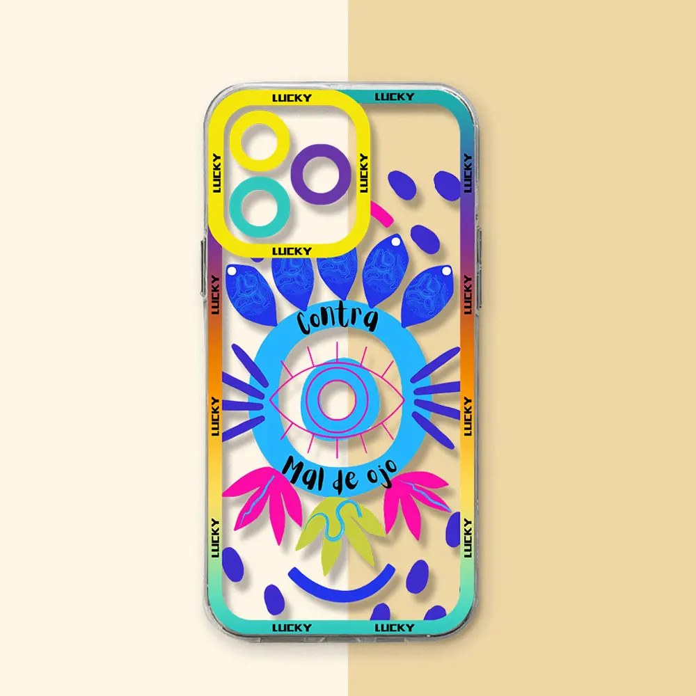 Funda de teléfono de ojo malvado azul de la suerte divertida, funda transparente para iPhone 16, 15, 14, 13, 12, 11, Mini Pro Max, X, XR, XSMax, 7, 8 Plus, SE20