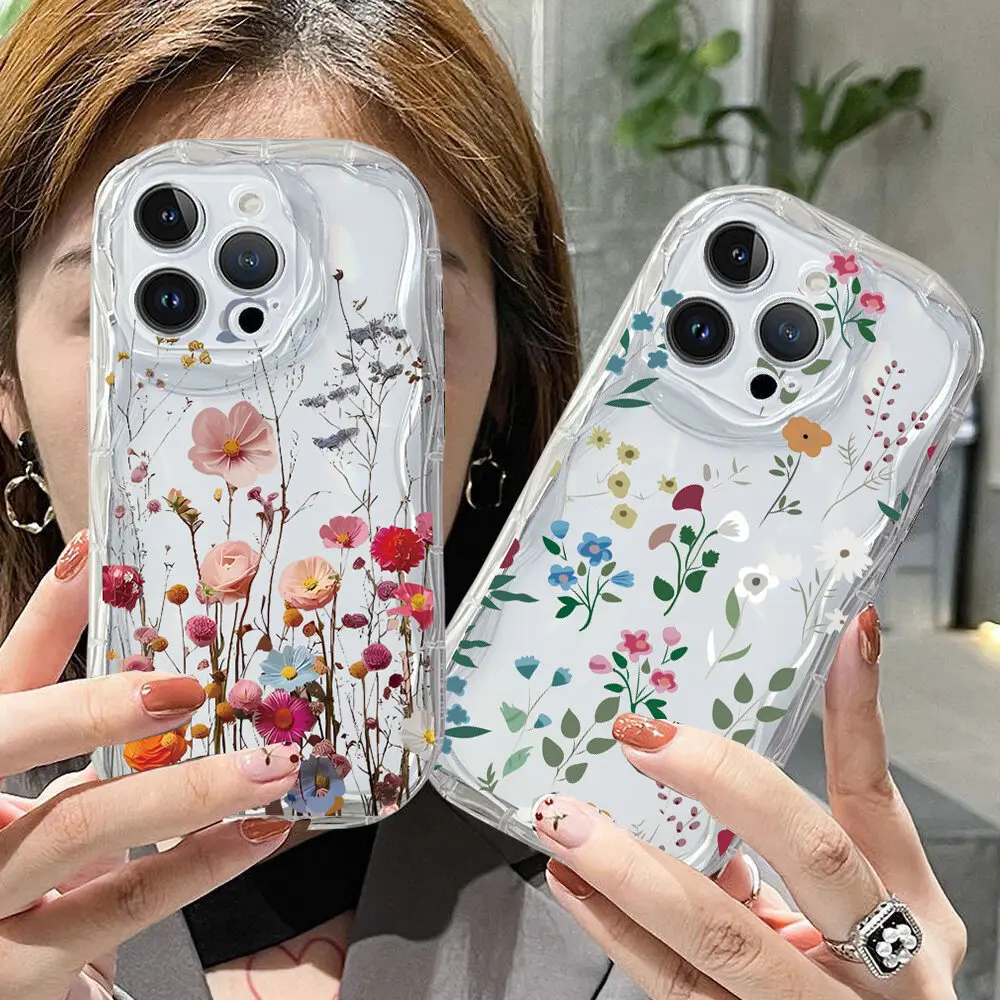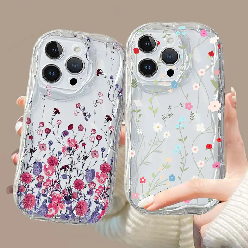 Funda de teléfono con ondas de hojas y flores transparentes para VIVO Y03 Y19S Y17S Y22S Y36 Y21 Y33S Y21S Y15S Y15A Y100 V40 Lite V29 V25 V23 V27 V30 Pro - imagen 1