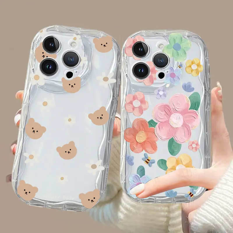 Funda de teléfono con ondas de hojas y flores transparentes para VIVO Y03 Y19S Y17S Y22S Y36 Y21 Y33S Y21S Y15S Y15A Y100 V40 Lite V29 V25 V23 V27 V30 Pro
