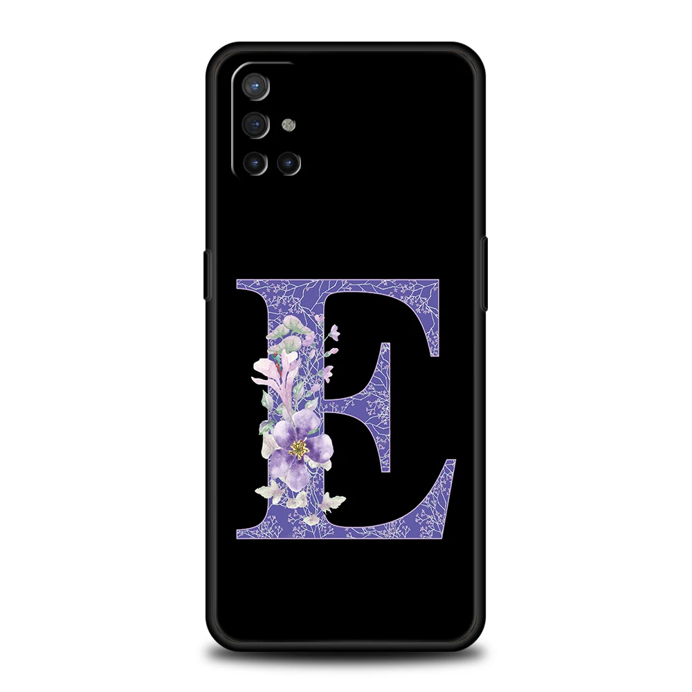 Funda de teléfono para OnePlus 13 12 11 10 9 Pro 9T 13R 12R 10R 9RT 10T 8T 8 Nord 2T CE 2 3 5G N30 cubierta letra inicial flor púrpura