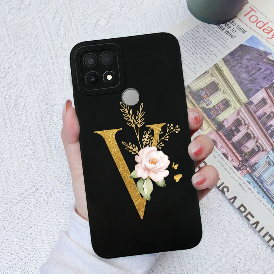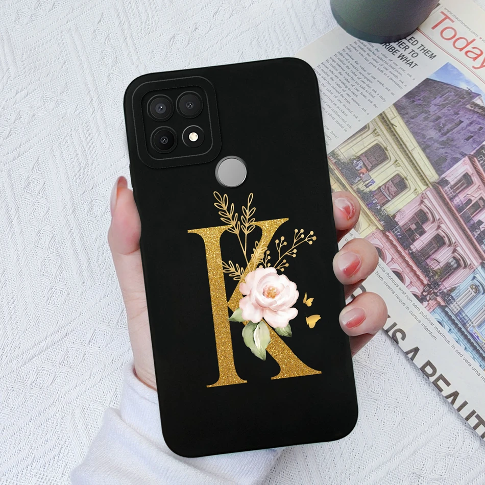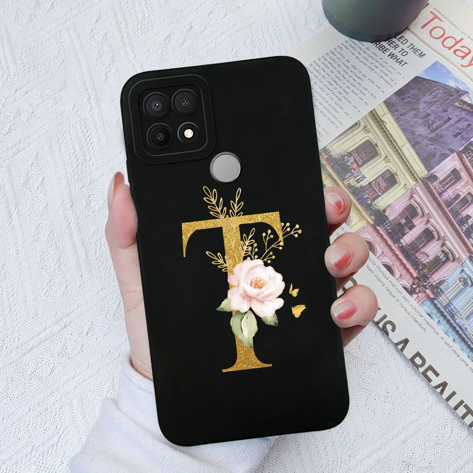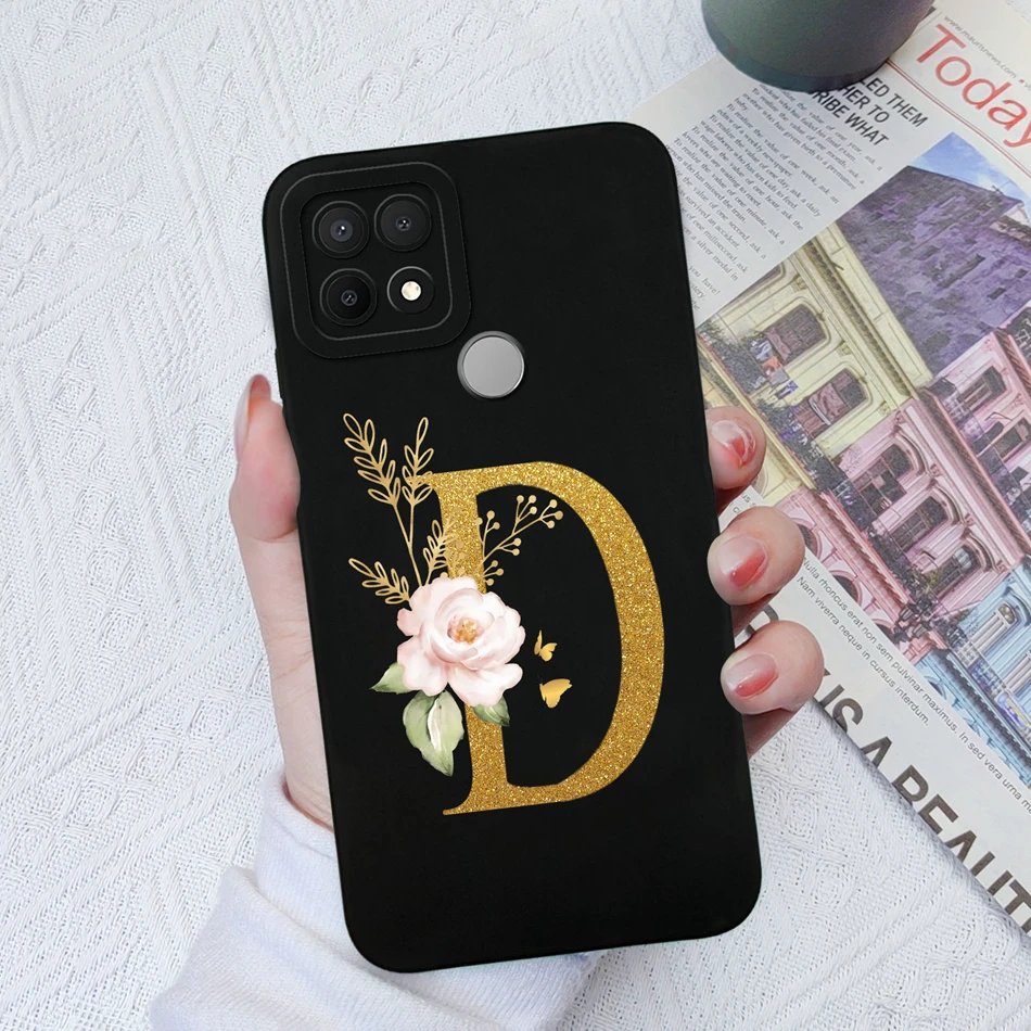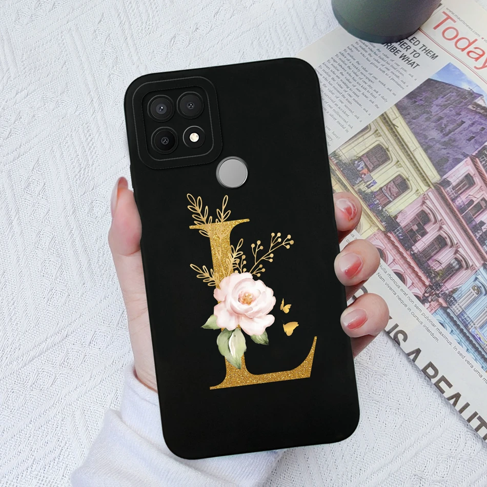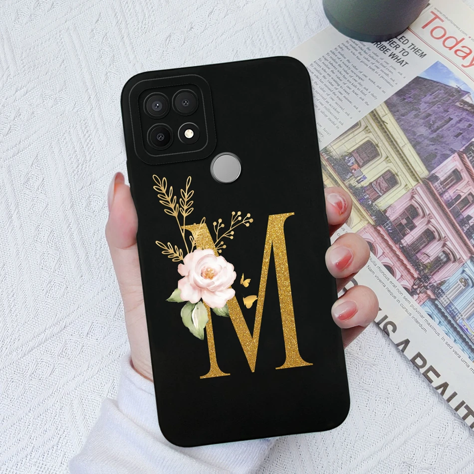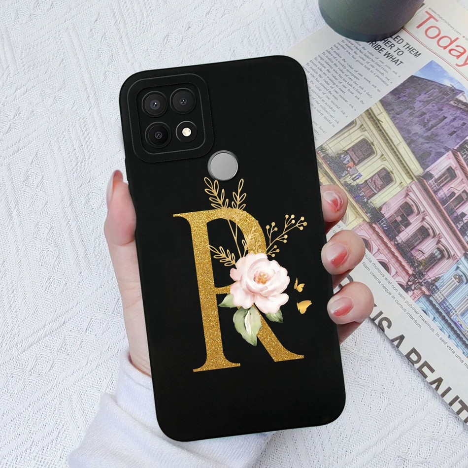 Comprar Funda de teléfono para OPPO A35, A36, A37, A38, letra Rosa elegante, cubierta protectora de lente de silicona líquida suave para OPPO A 35, 36, 37, 38, parachoques