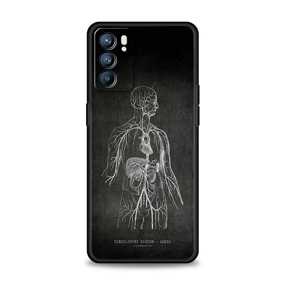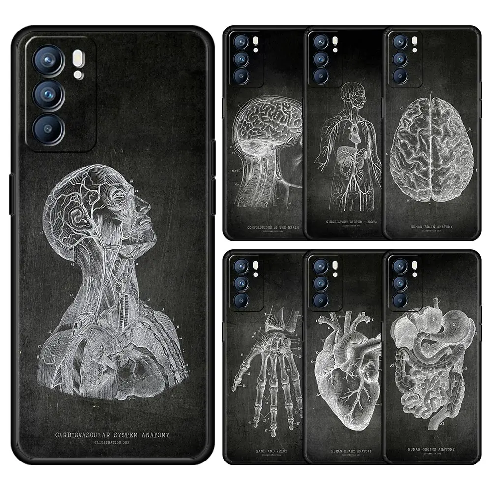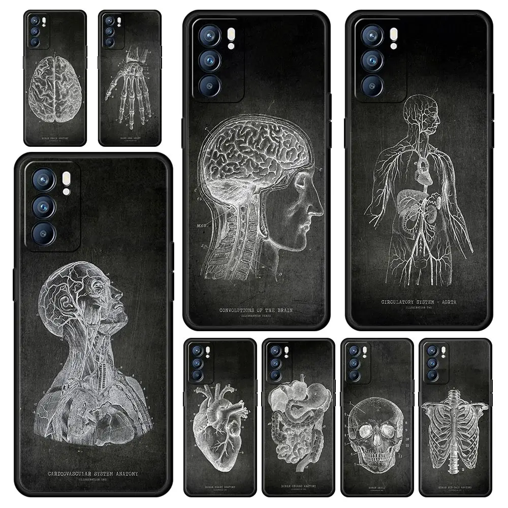Comprar Funda de teléfono para Oppo A54, A53, A52, A9, A15, A95, A17, A16, A76, A74, A57, Find X6 Pro, X5, Reno8, Reno7, Reno6 Pro, 5G, cubierta de pizarra, anatomía