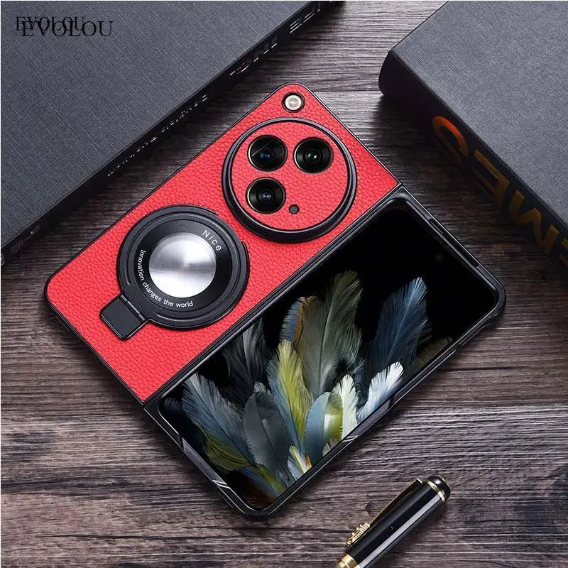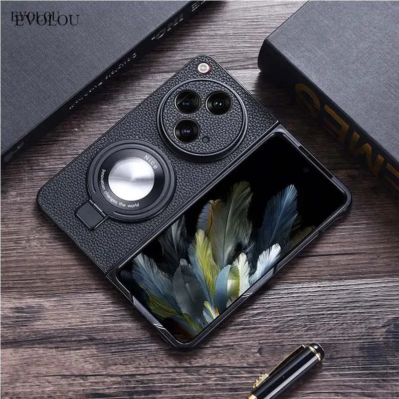 Comprar Funda de teléfono para OPPO Find N3 5G, Protector de cámara, soporte magnético, PU, Litchi, Magsafe