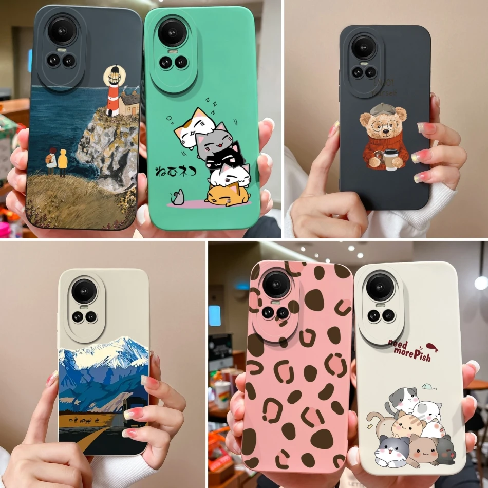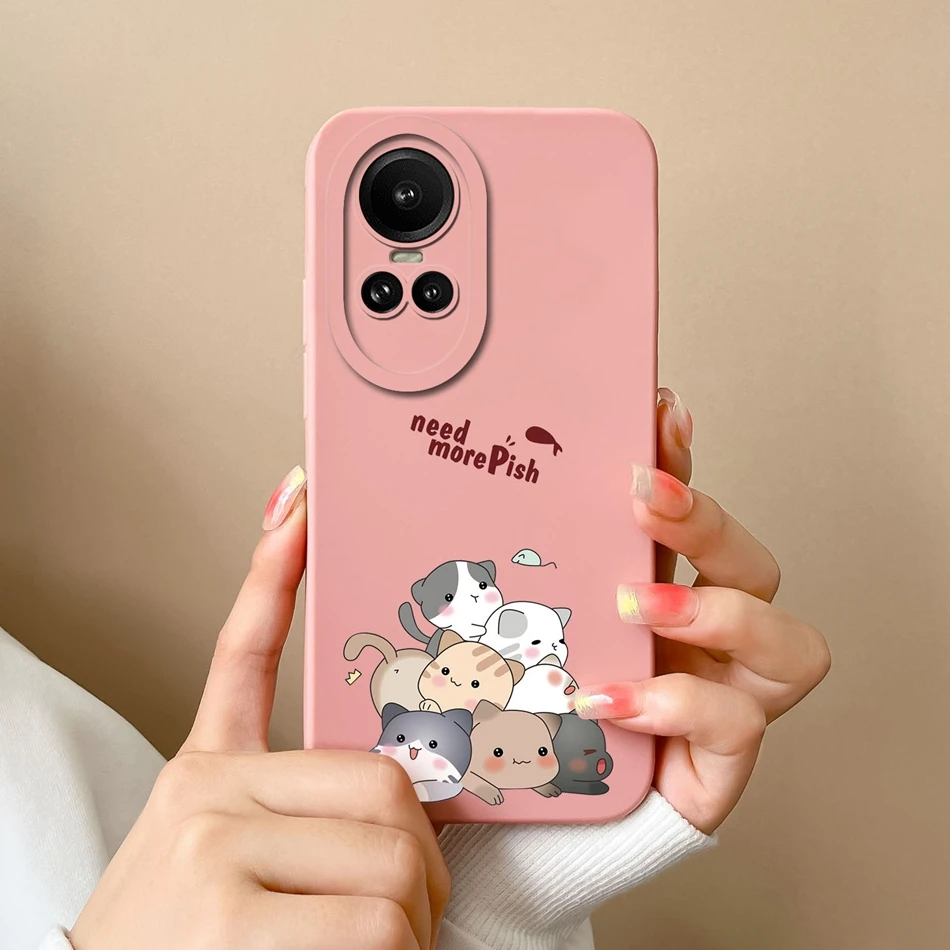Comprar Funda de teléfono para Oppo Reno 10 Pro 5G, carcasa de protección de cámara de silicona líquida suave, cubierta trasera antideslizante para Oppo Reno10Pro, parachoques