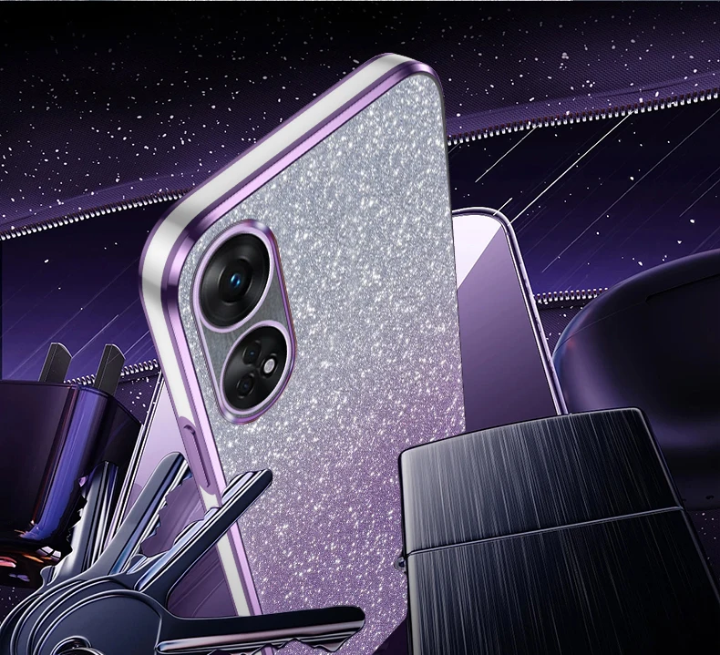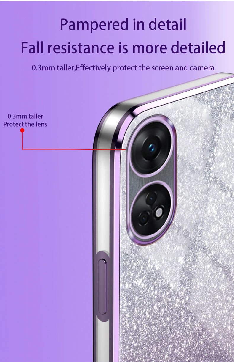 Comprar Funda de teléfono para OPPO Reno 10 Pro, carcasa trasera de silicona chapada en purpurina degradada de lujo, 8T, 4G, 5G