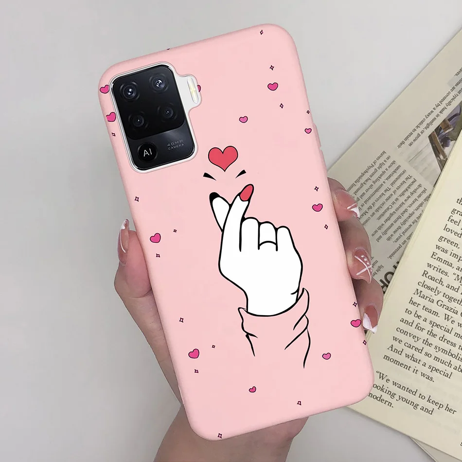 Funda de teléfono para OPPO Reno 5F 5Z 6Z, carcasa trasera de silicona mate suave con corazón de amor, anticaída