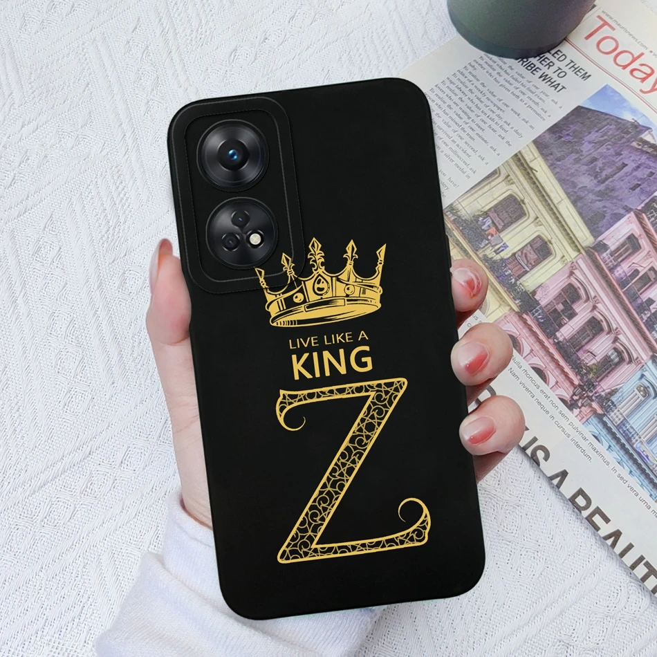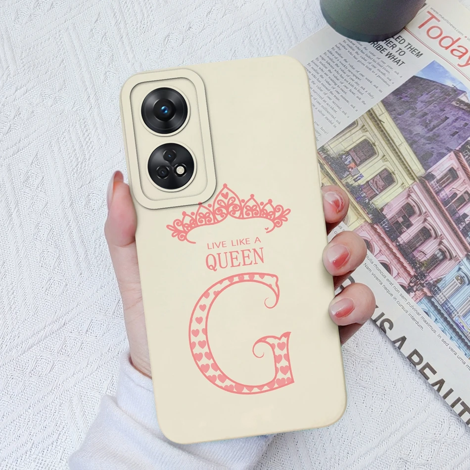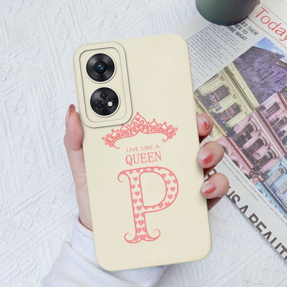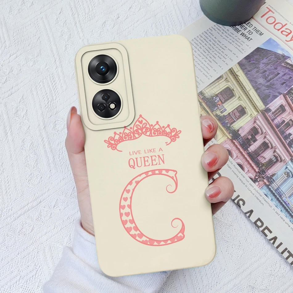 Comprar Funda de teléfono para Oppo Reno 8T 8Z 8 Lite, carcasa de silicona líquida avanzada con letras de A-Z y nombre, Protección trasera de lente, color rosa