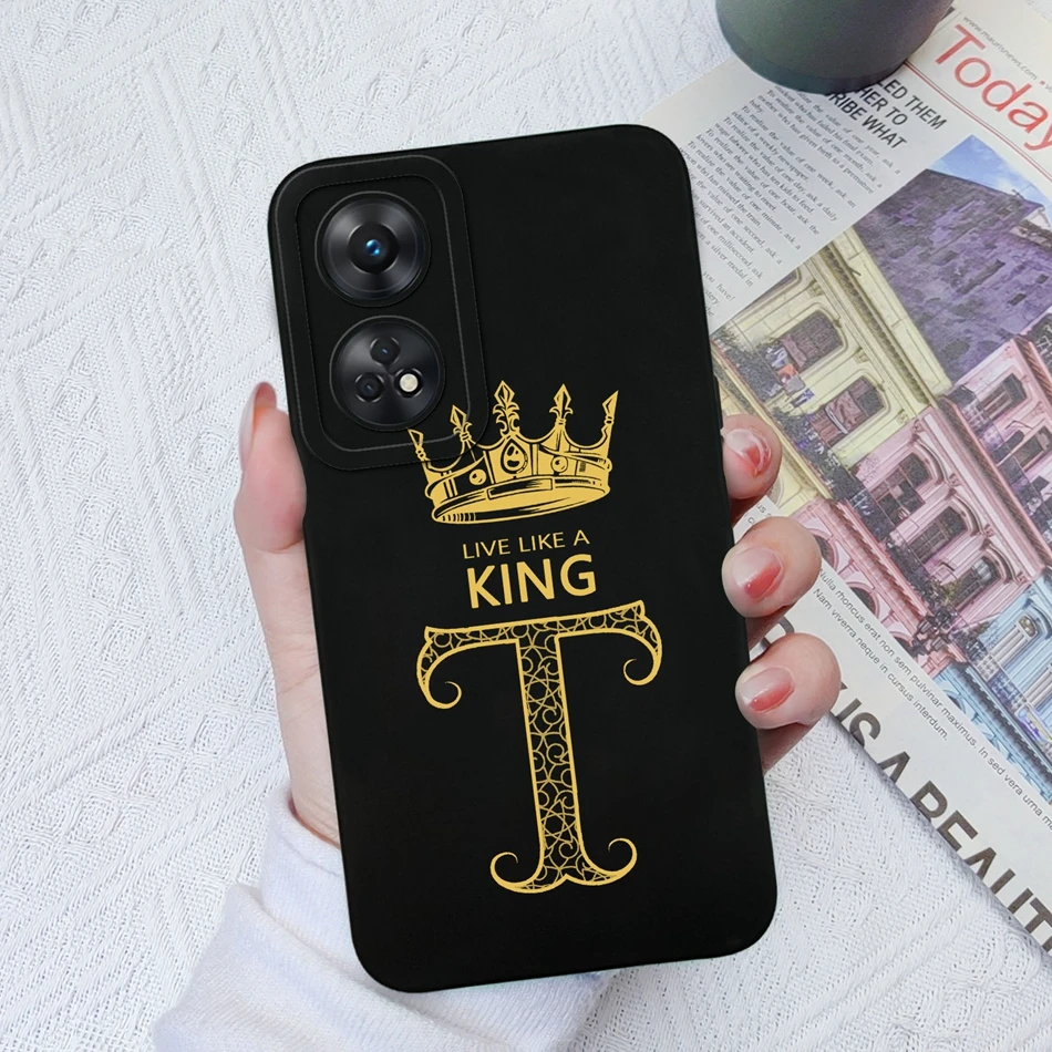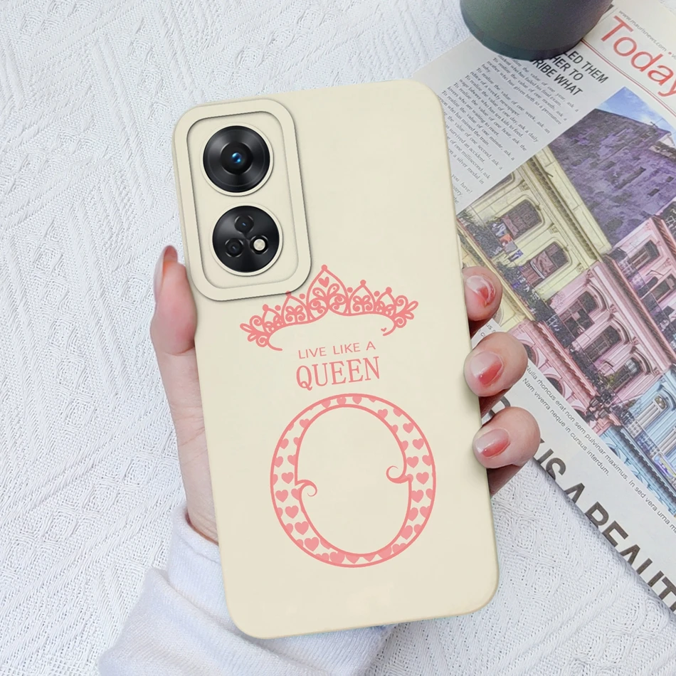 Para Oppo Reno 8T 8Z 8 Lite, funda de teléfono de pareja, nombre, letra de la lente de silicona líquida avanzada, funda de protección trasera, carcasa rosa