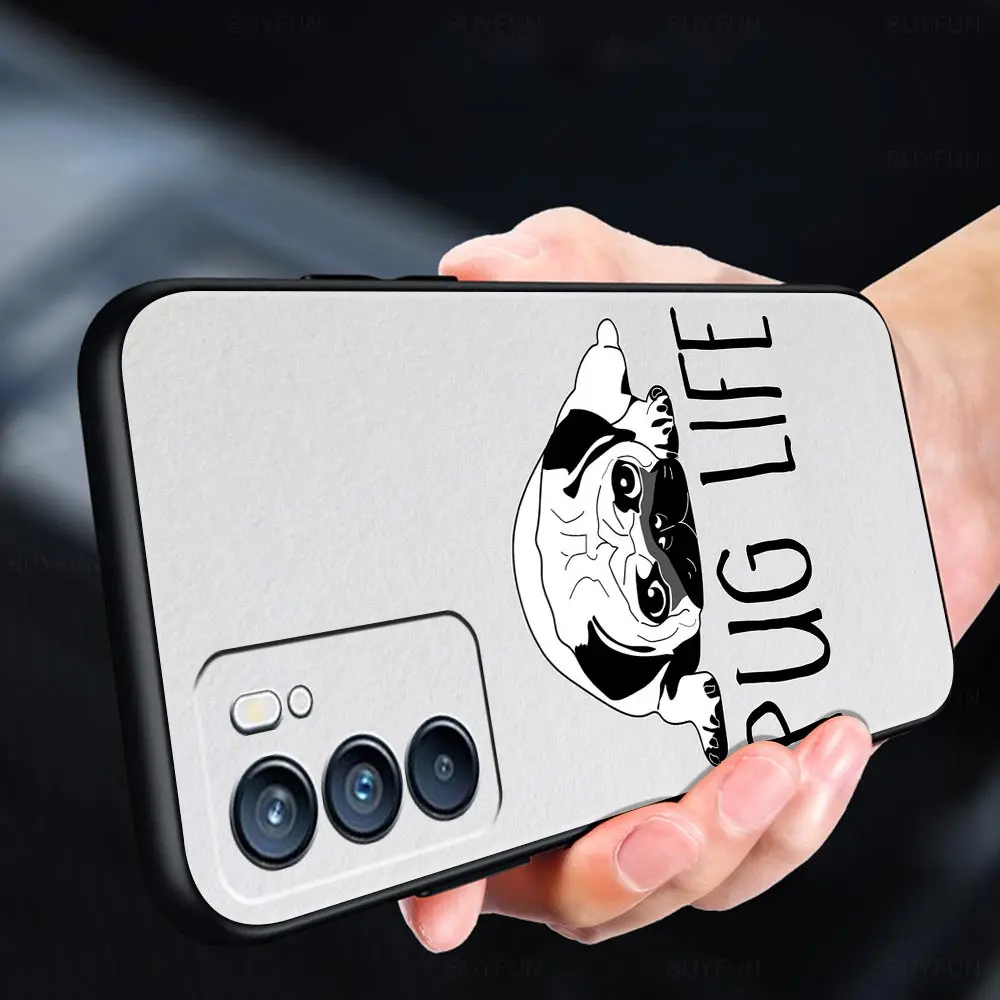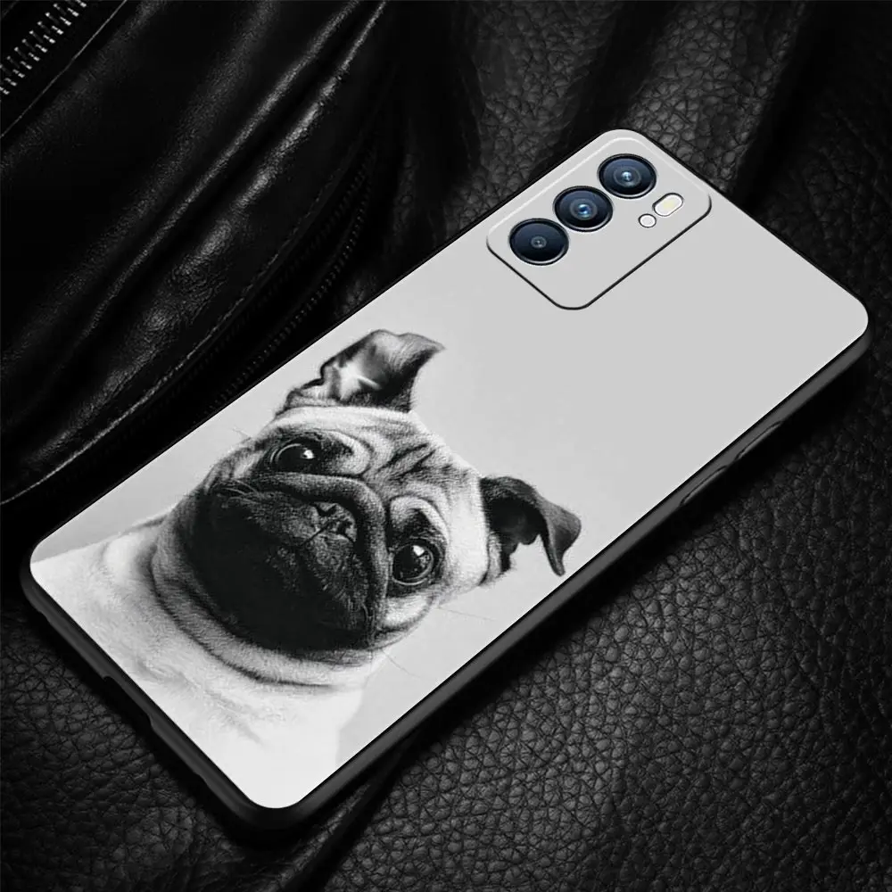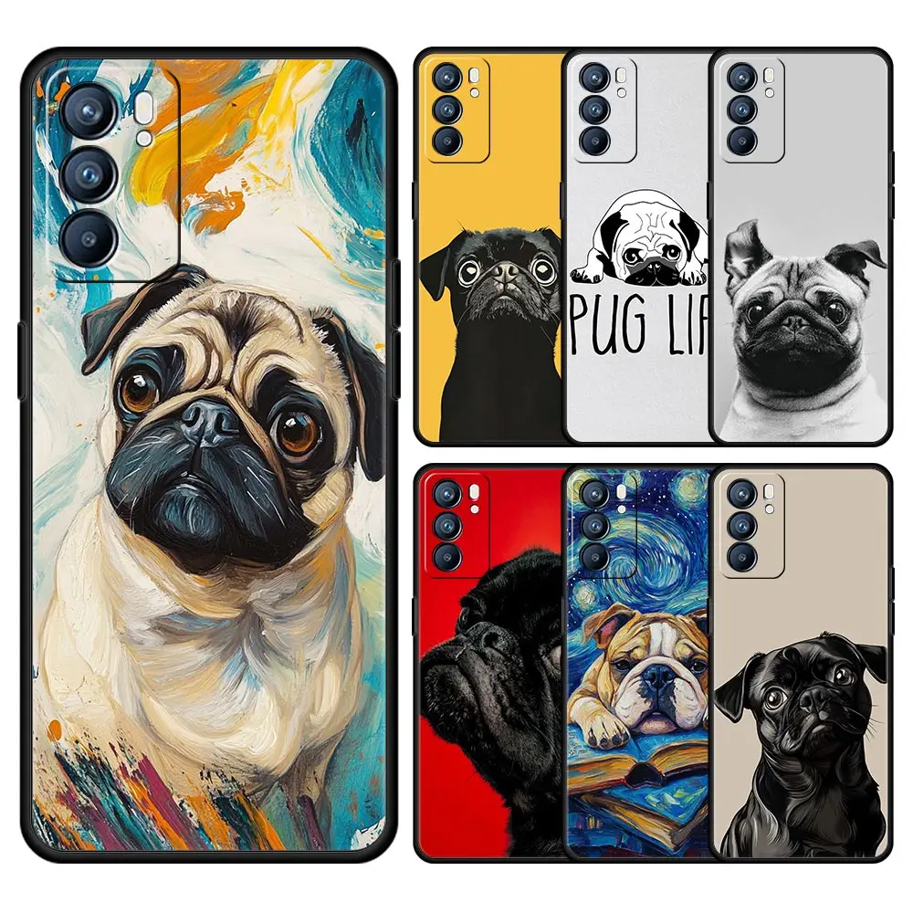 Funda de teléfono para Oppo Reno13 Reno12 Reno11 F Reno10 Pro A54 A53 A95 A76 A74 A57 A98 A80 A79 5G A78 4G cubierta negra Pug de primer plano