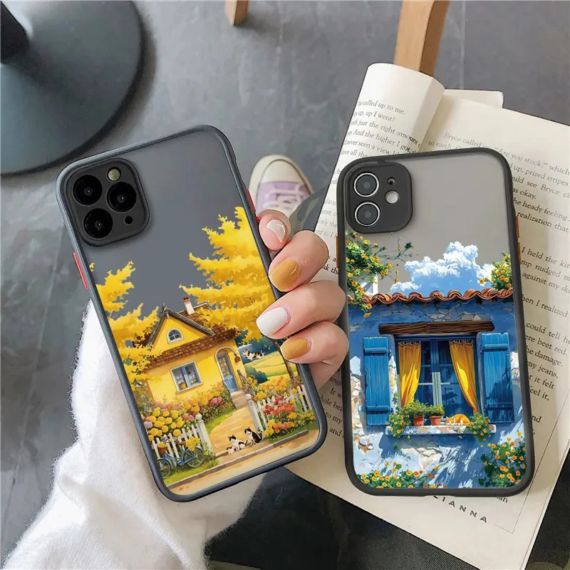Funda de teléfono con paisaje de escena de casa de Villa de vacaciones para Xiaomi 14T Pro 11 Lite 14 13 12 13T 12T cubierta de parachoques mate dura a prueba de golpes
