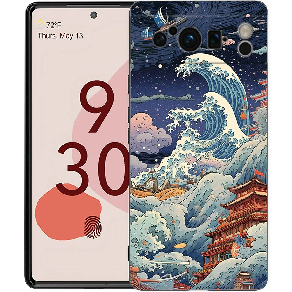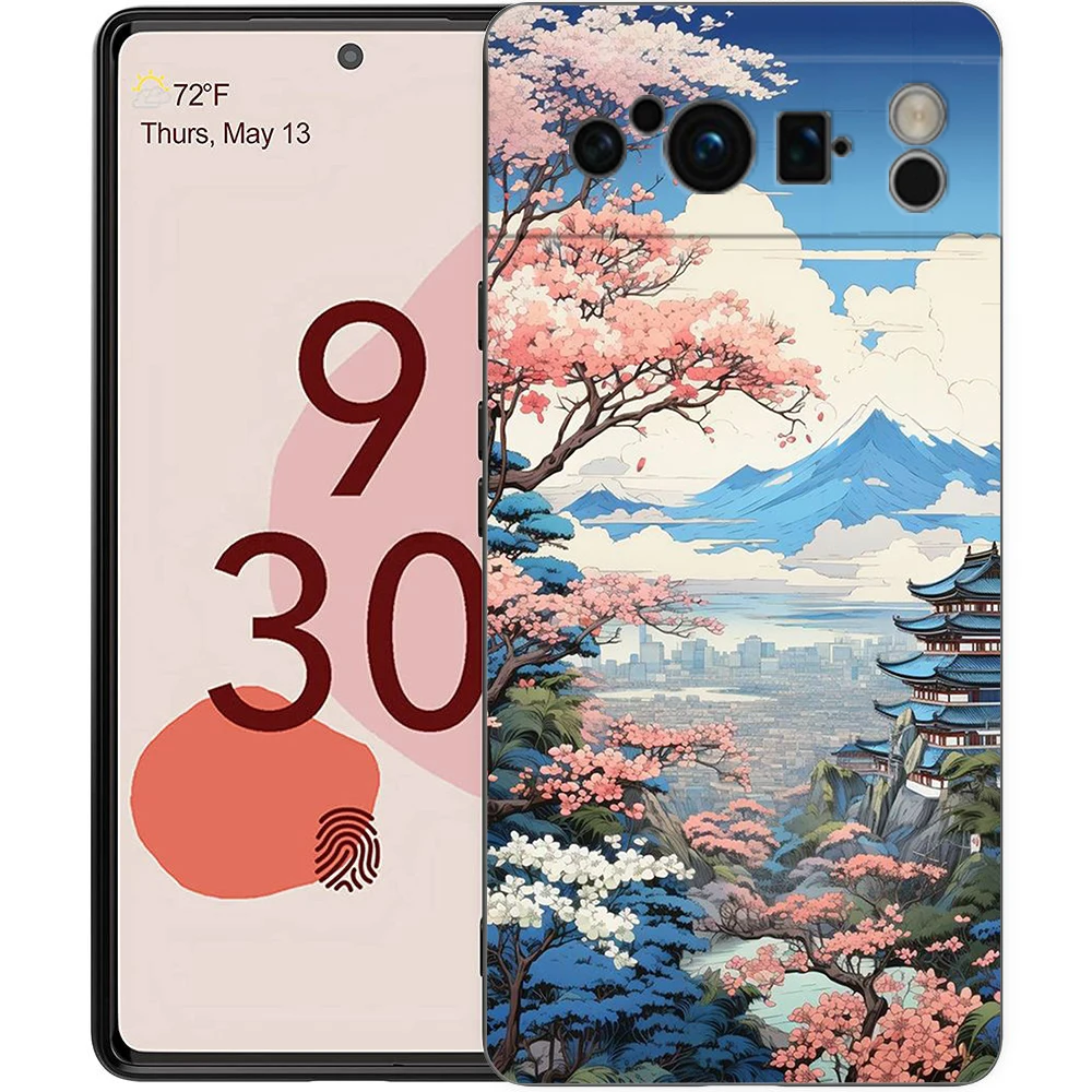 Funda de teléfono con paisaje japonés para Google Pixel 8, 7, 6 Pro, 8A, 6A, 7A, 5G, silicona suave a prueba de golpes, TPU, negra