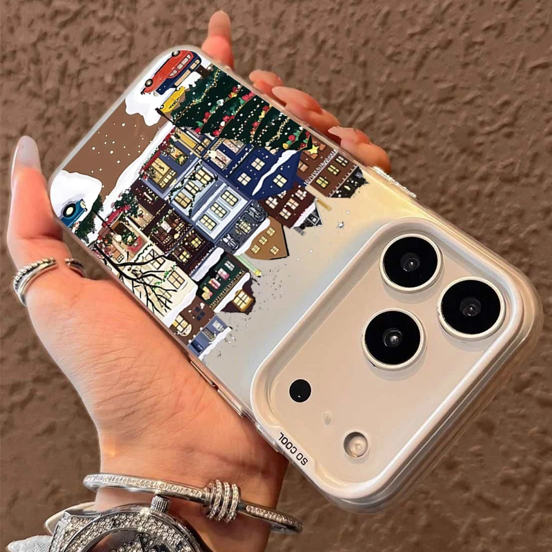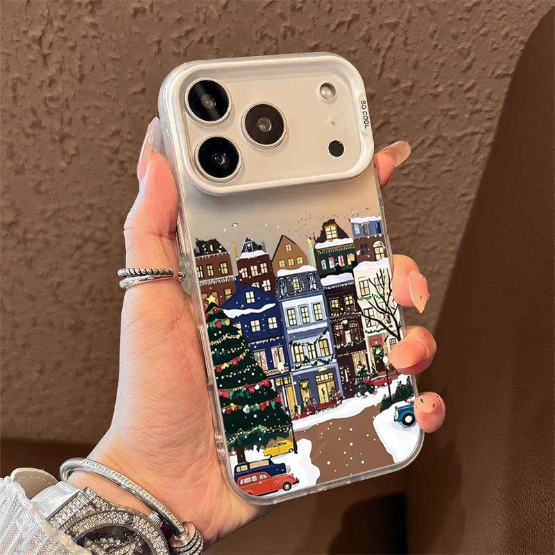 Funda de teléfono con paisaje de nieve de edificio Rural para iPhone 17 16 15 Pro Max 14 Plus 13 12 11 XS X XR 7 8 Plus, cubierta mate a prueba de golpes de aire