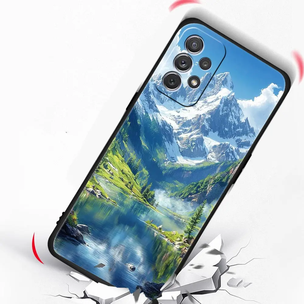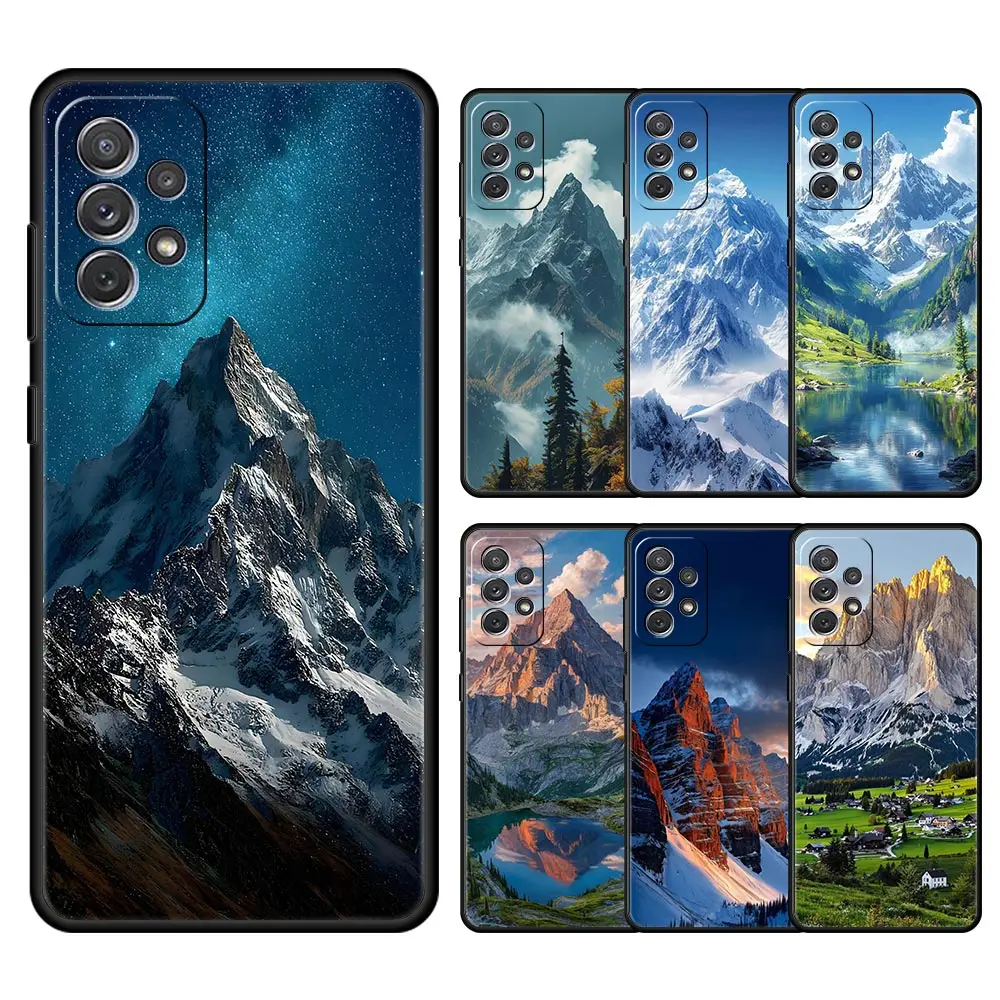 Funda de teléfono con paisaje de picos de montaña para Samsung A51 A71 A21S A17 A11 A15 A25 A23 A33 A53 A73 A07 A03S A05S A13 A35 A55 5G