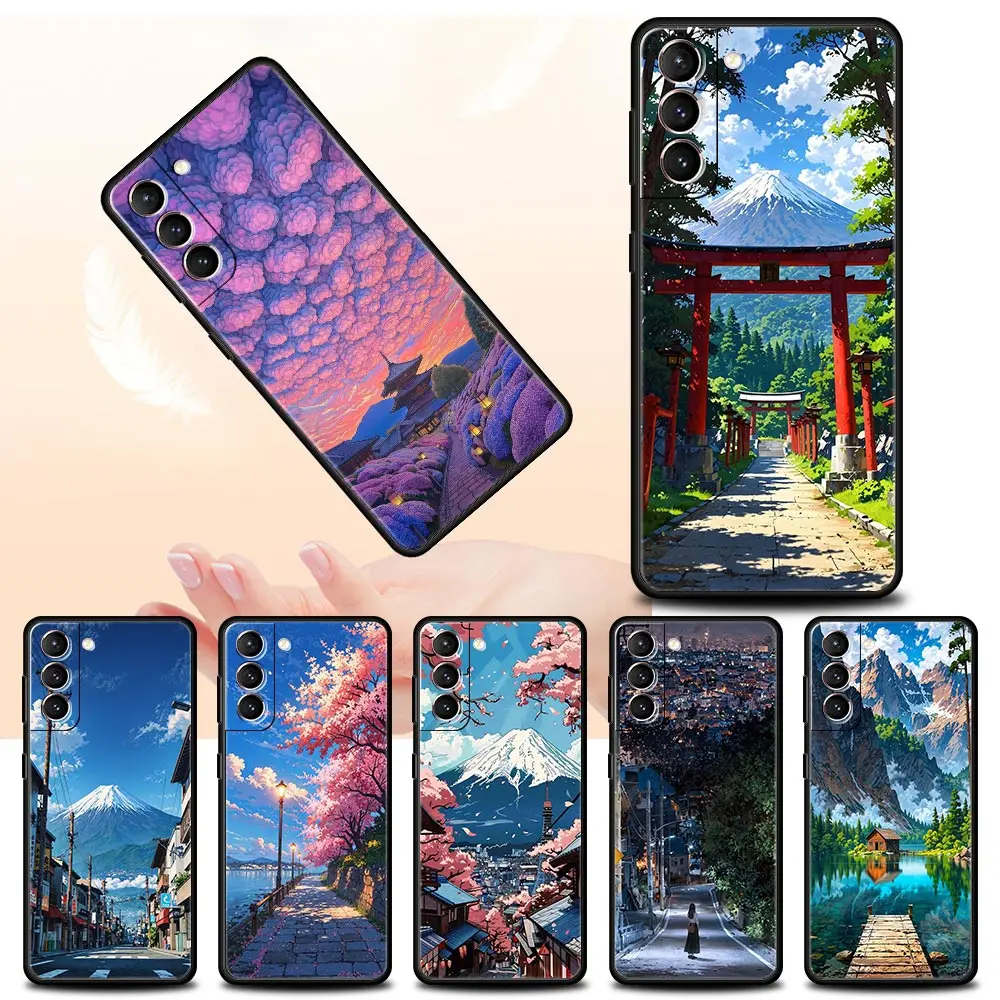 Comprar Funda de teléfono con paisaje de la serie japonesa para Samsung Galaxy S25 S24 S23 S22 S20 Ultra S21 FE 5G S10 Plus S10E, funda suave de TPU