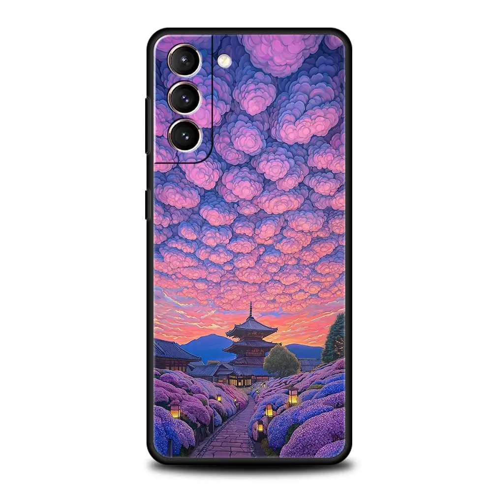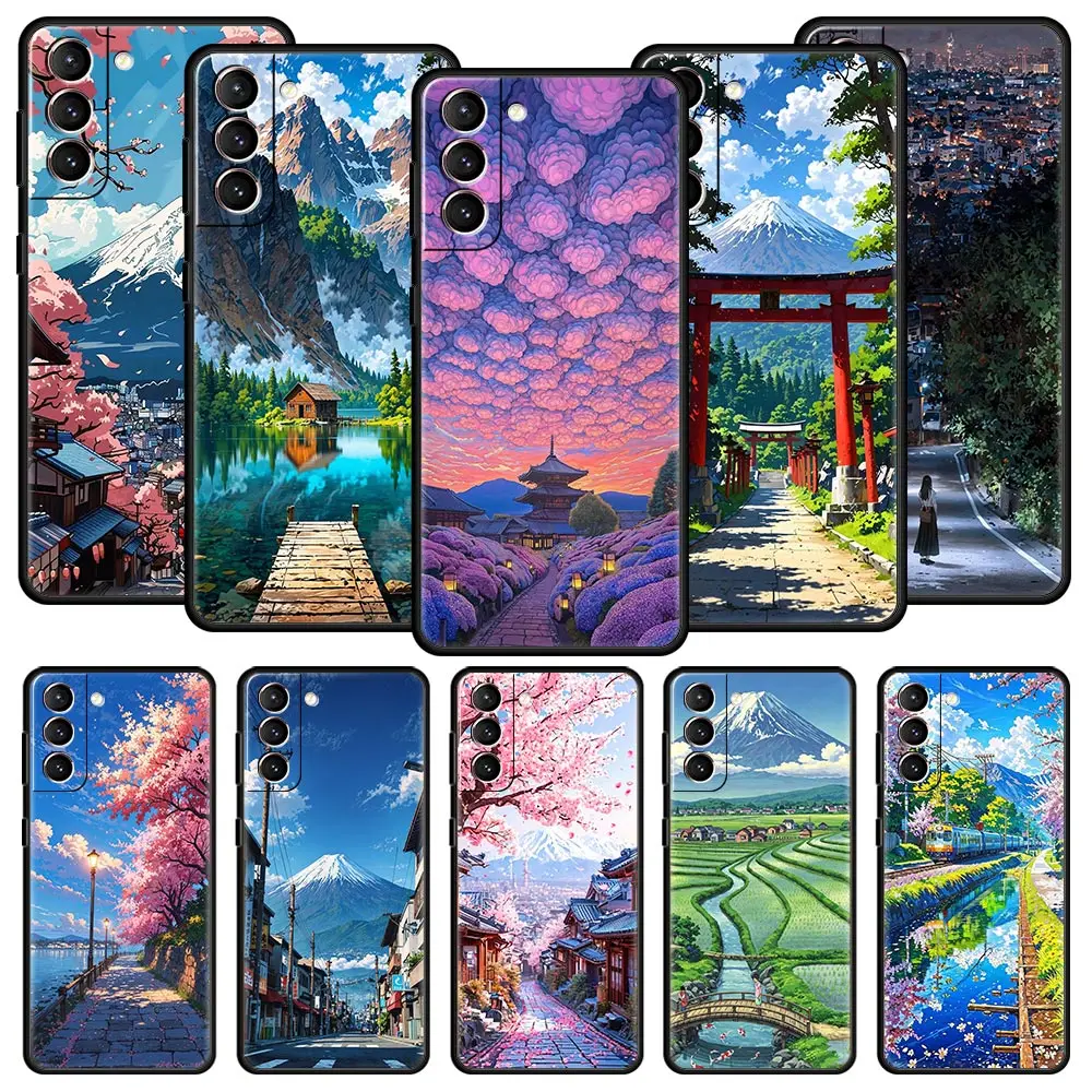 Comprar Funda de teléfono con paisaje de la serie japonesa para Samsung Galaxy S25 S24 S23 S22 S20 Ultra S21 FE 5G S10 Plus S10E, funda suave de TPU