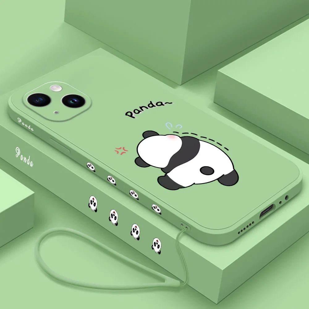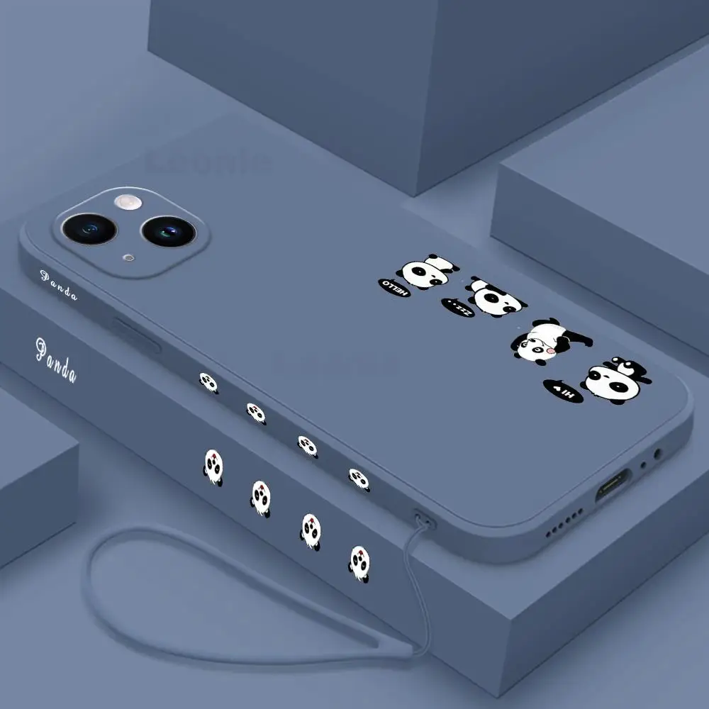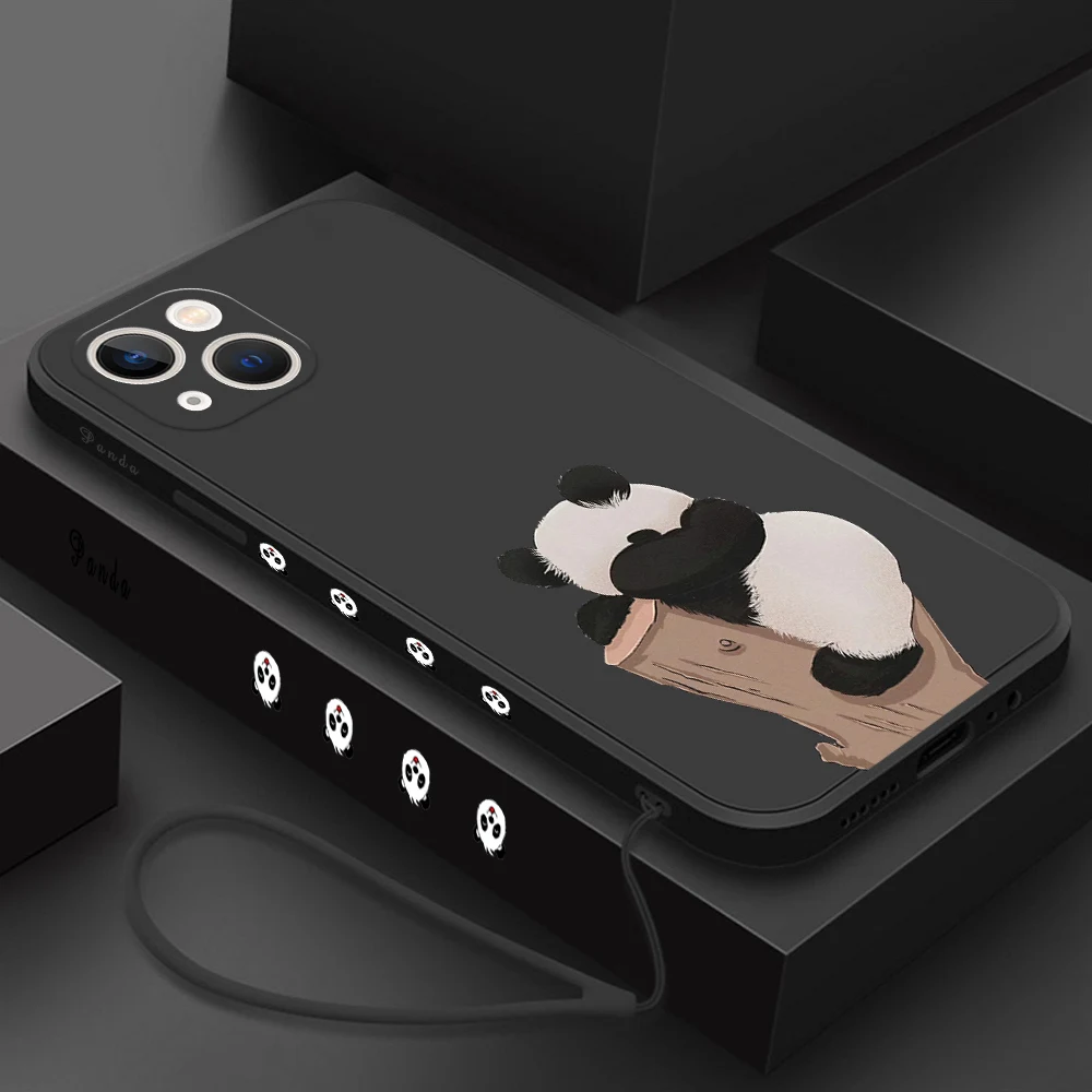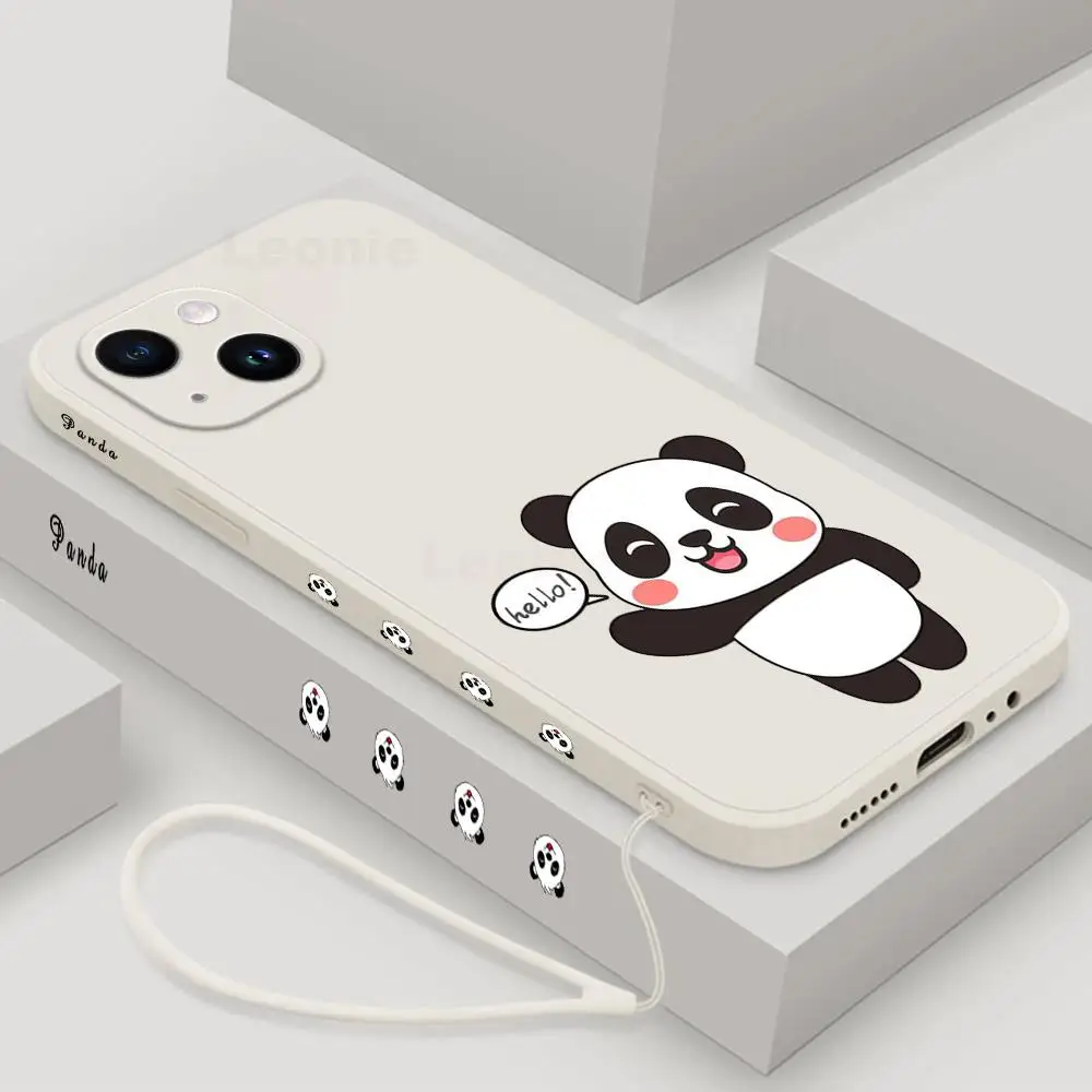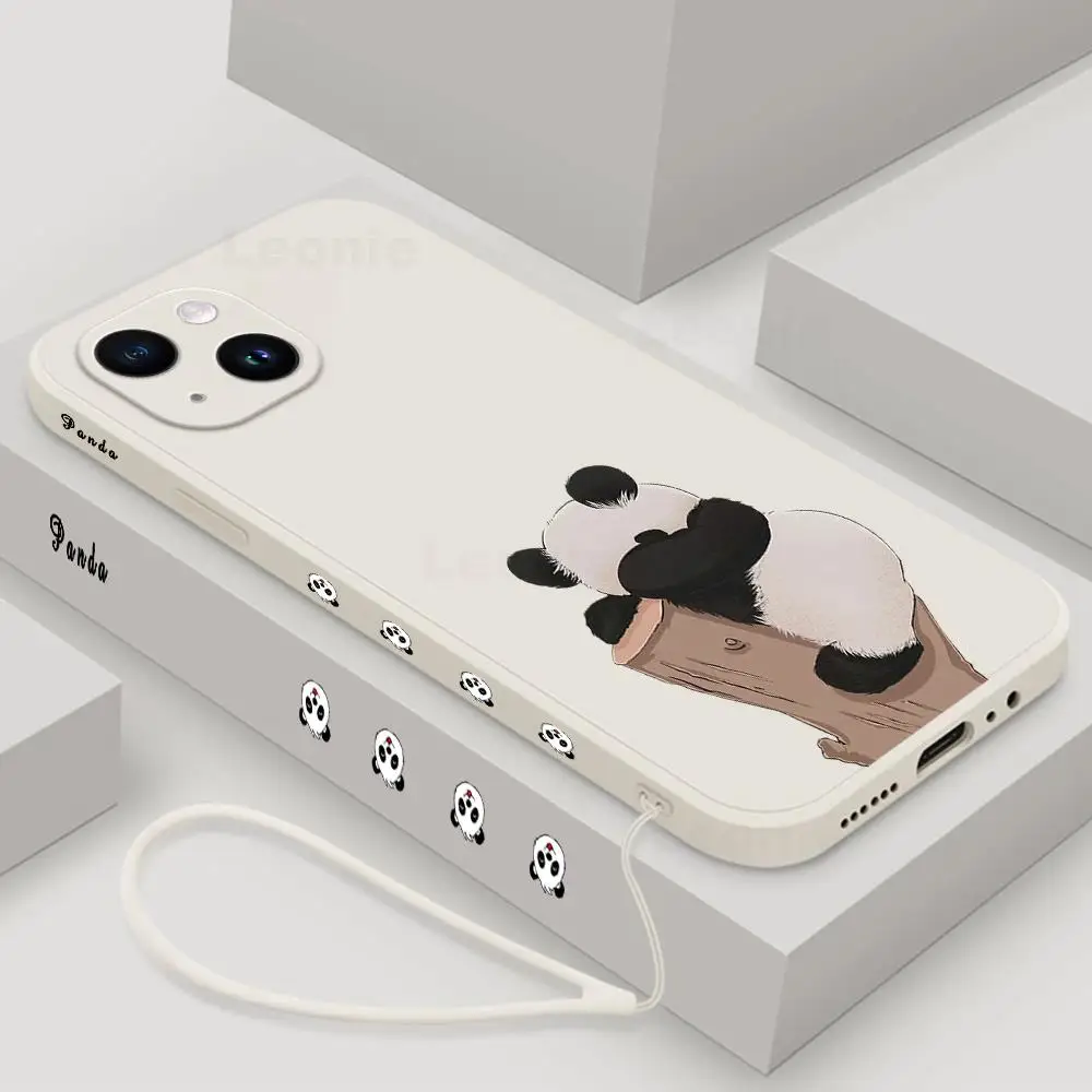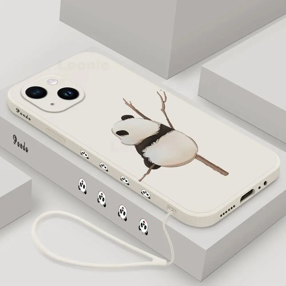 Funda de teléfono Panda para iPhone 15 14 13 12 11 15 Pro Max 13 mini 15 Plus 15 14 Pro Max funda de teléfono de silicona con cordón