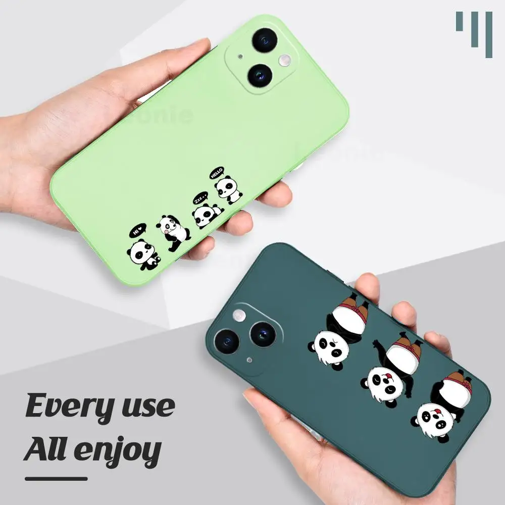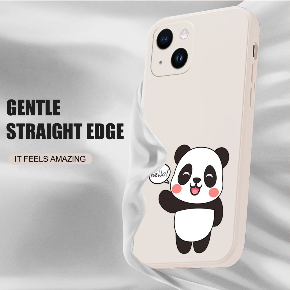 Nombre: Cute Panda Phone Case Característica A: Funda de teléfono de silicona líquida-Forro de franela Característica B: Con Cordón de soporte de mano Característica C: a prueba de caídas, a prueba de golpes, a prueba de arañazos, protección de lentes
