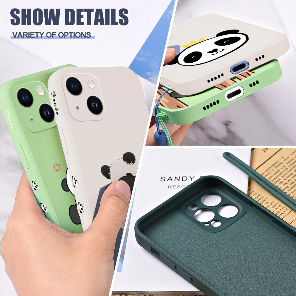 Comprar Funda de teléfono Panda con cordón, carcasa de silicona para iphone 15, 14, 13, 12, 11, 15 Pro Max, 13 mini, 15 Plus, 15, 14 Pro Max