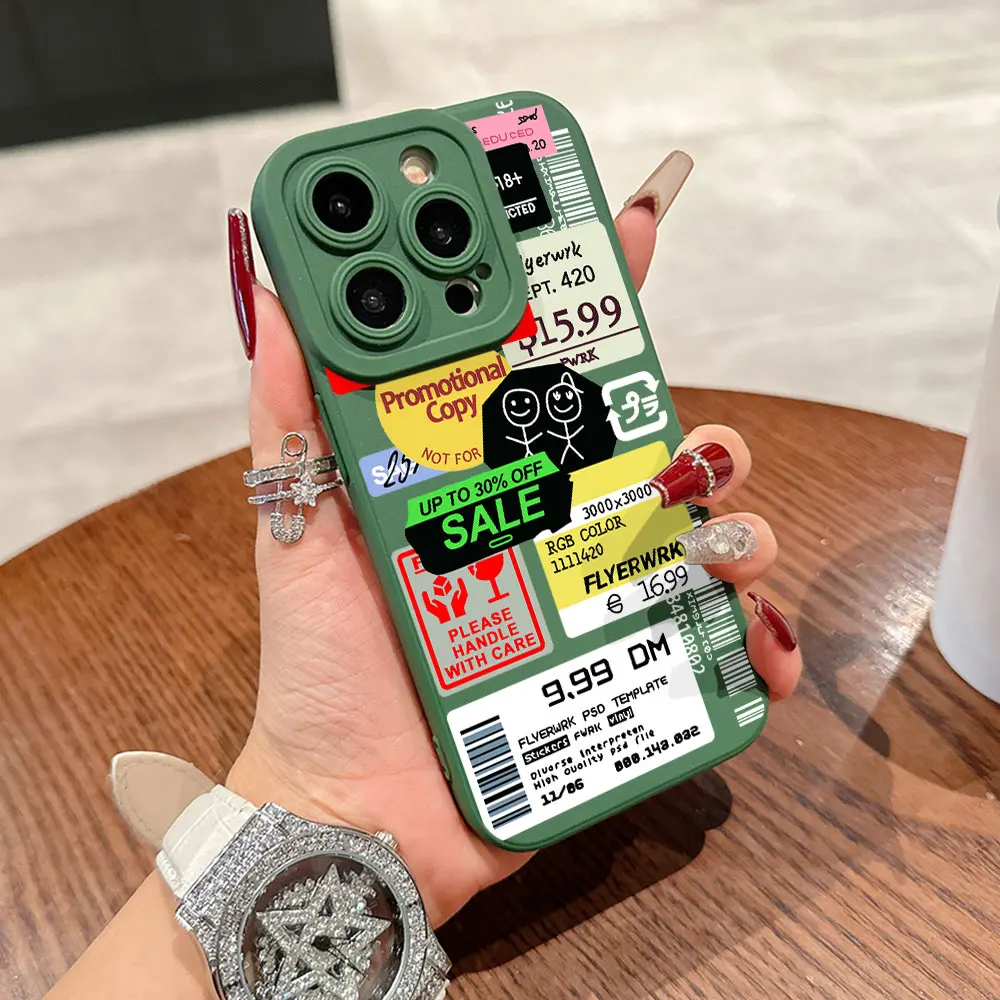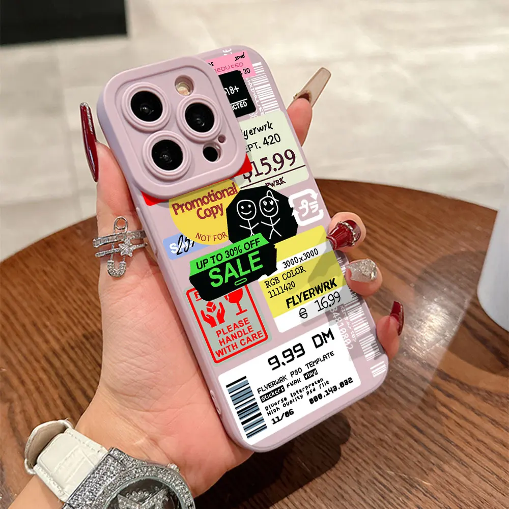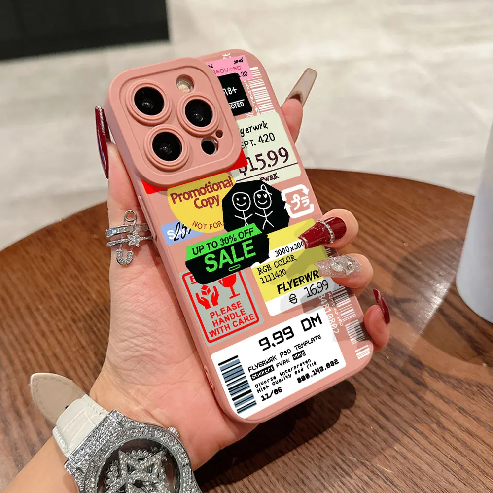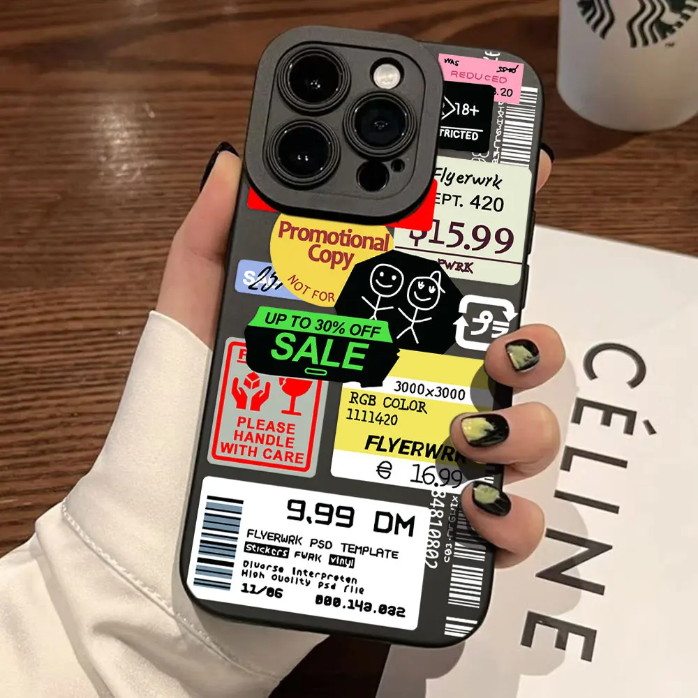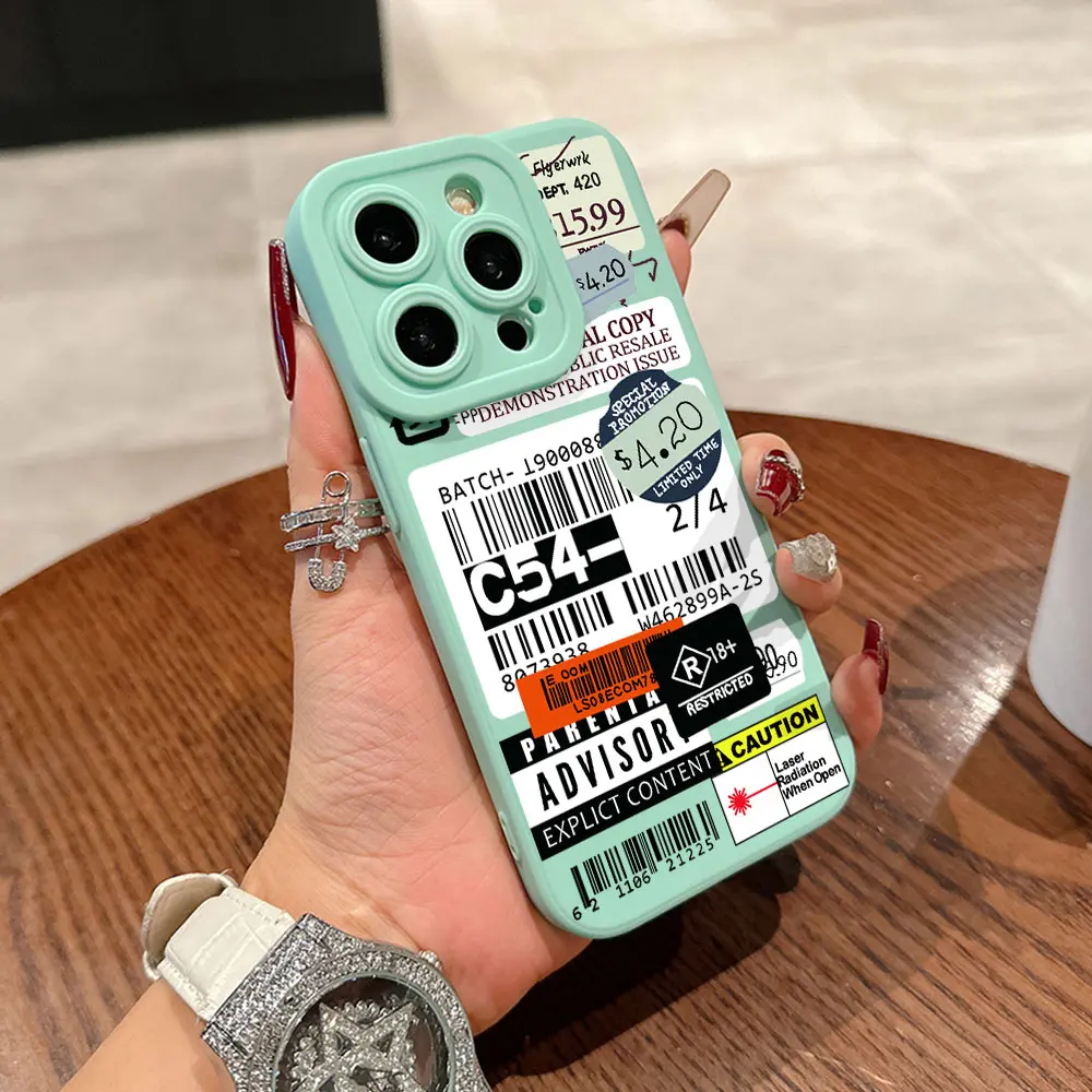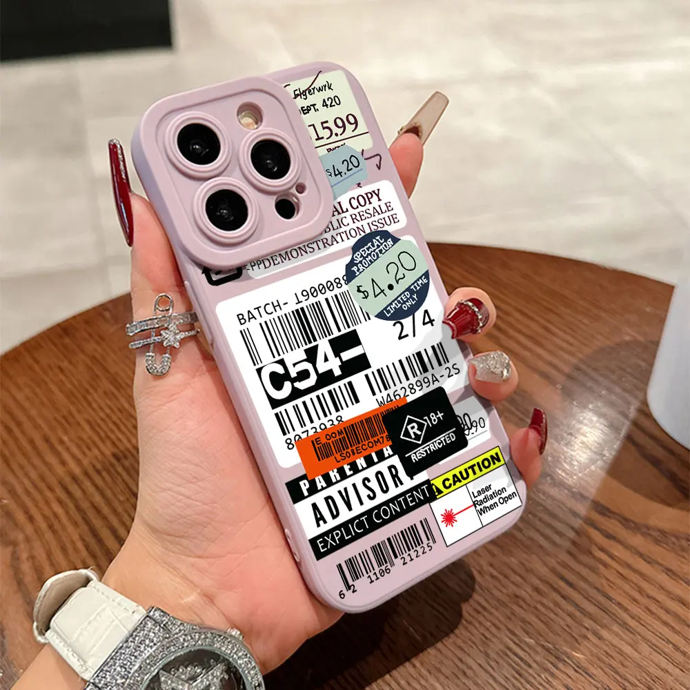 Funda de teléfono de pantalla completa con código de barras y etiqueta de sello de tendencia para iPhone 16 15 14 13 12 11 X XR Xs 8 7 Plus Pro Max, funda trasera de silicona
