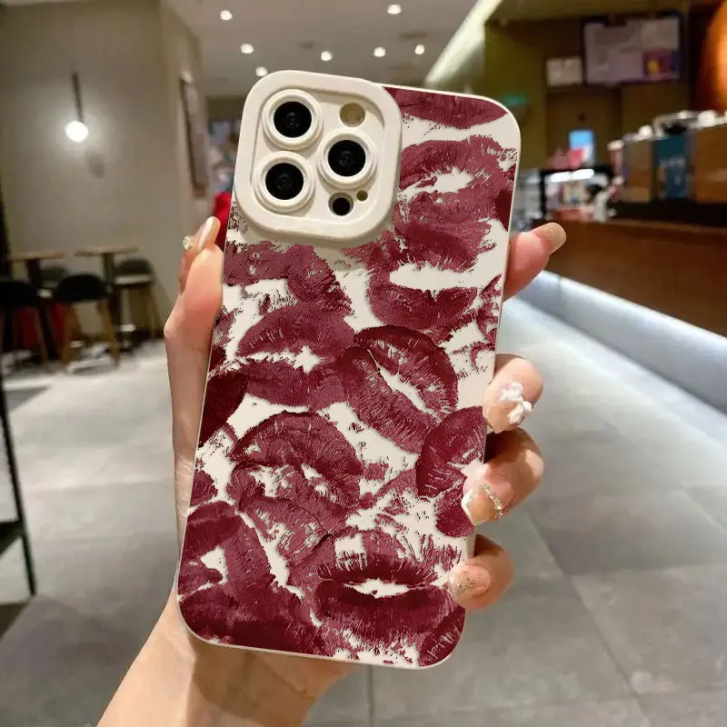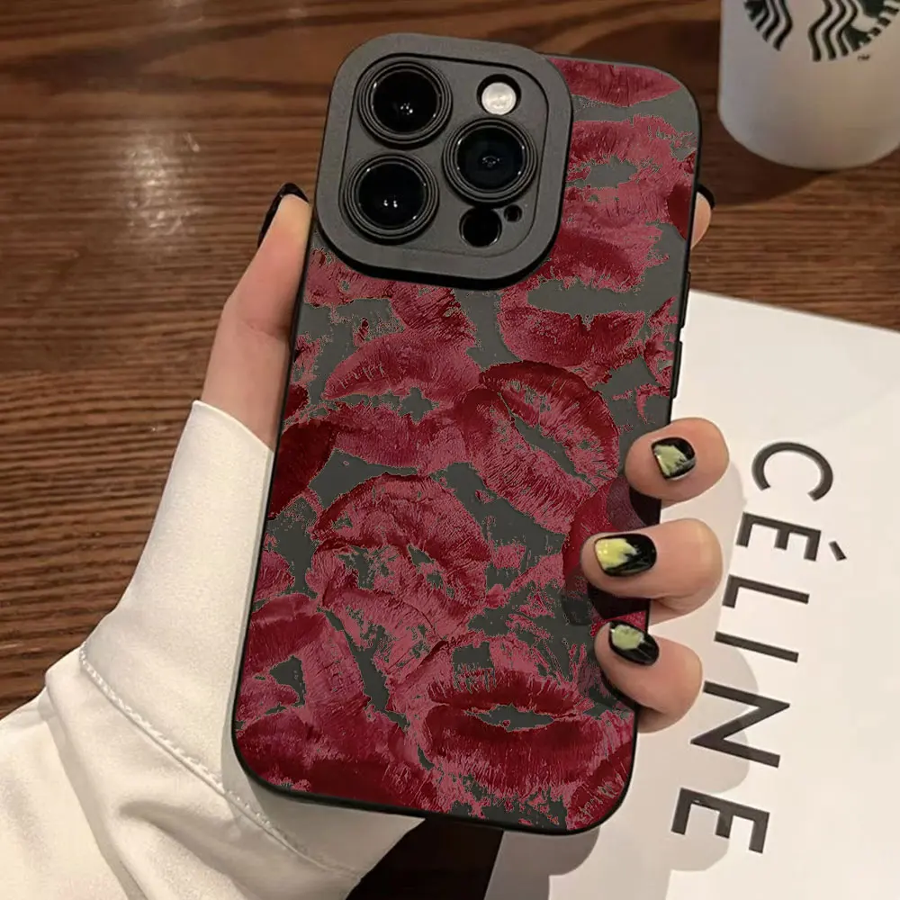 Funda de teléfono con pantalla completa de pupila de lujo con labios rojos sexys para iPhone 16 15 14 13 12 11 X XR Xs 8 7 Plus Pro Max, funda trasera de silicona