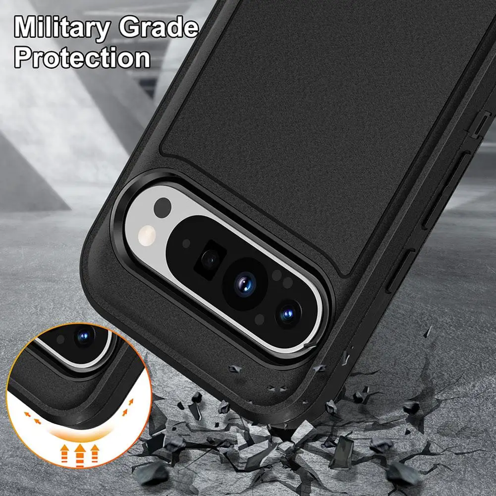 Comprar Funda de teléfono con parachoques oculto para Google Pixel 9 Pro/9 Pro XL, carcasa mate, resistente a los golpes, doble capa de soporte pesado, E4O5
