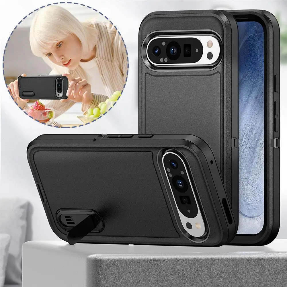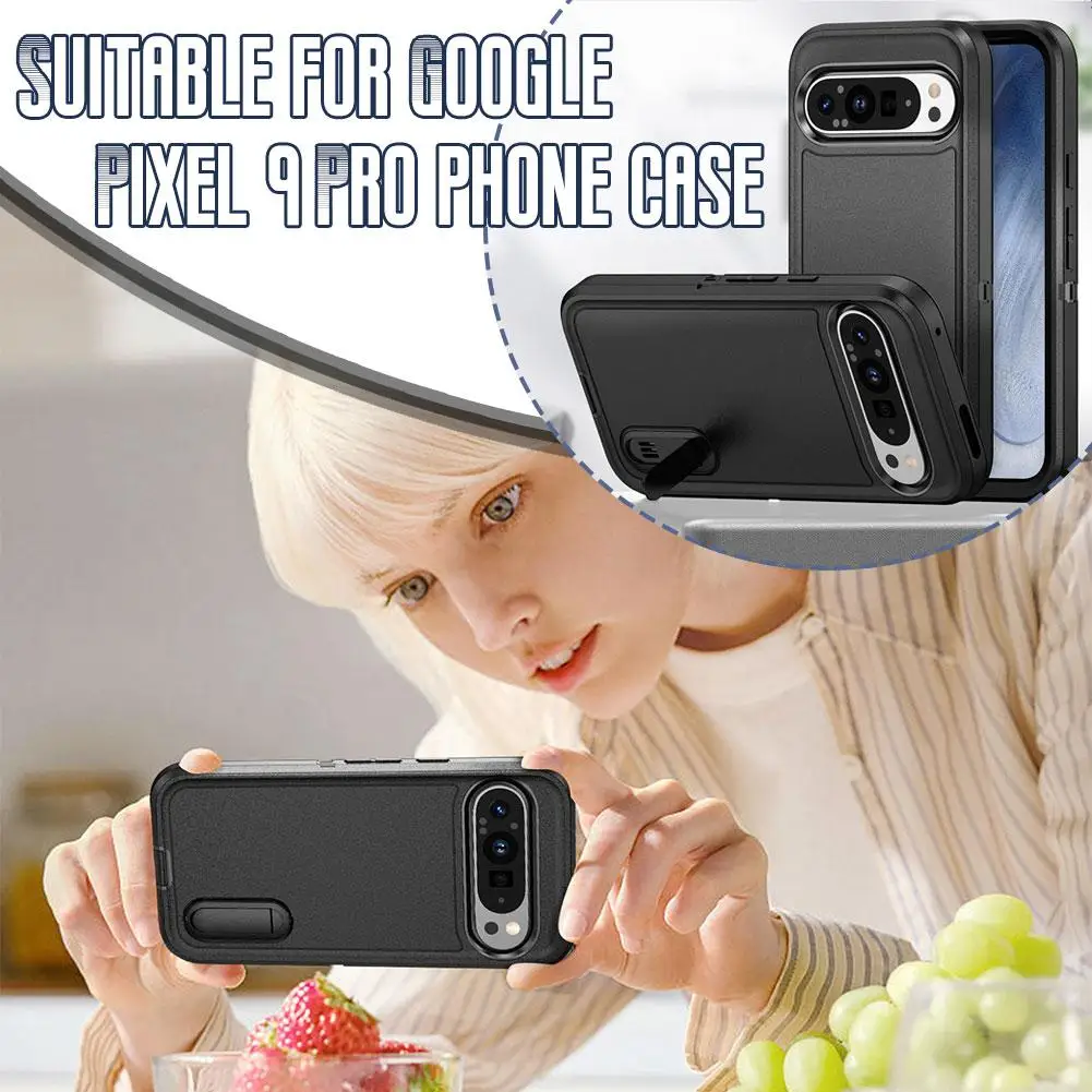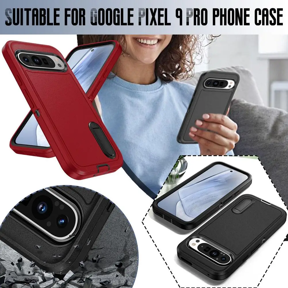 Comprar Funda de teléfono con parachoques oculto para Google Pixel 9 Pro/9 Pro XL, carcasa mate, resistente a los golpes, doble capa de soporte pesado, E4O5