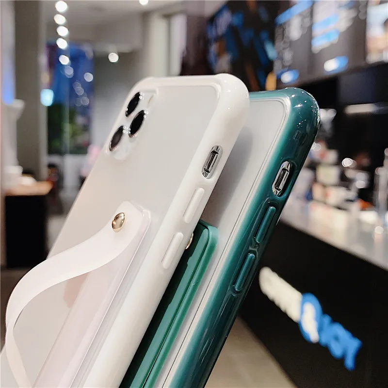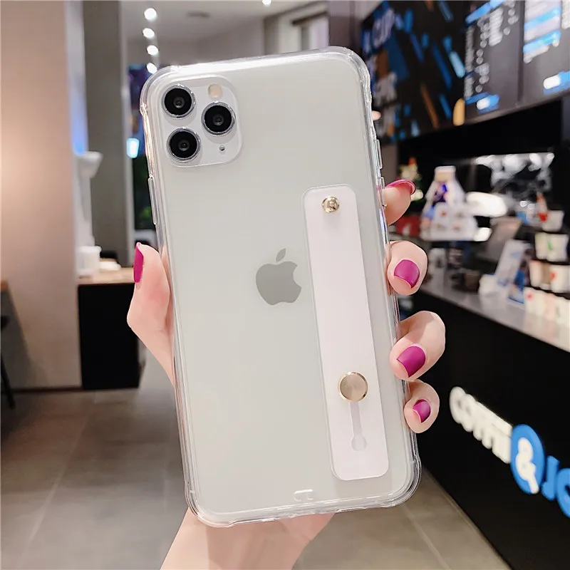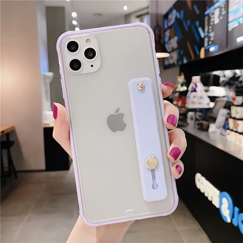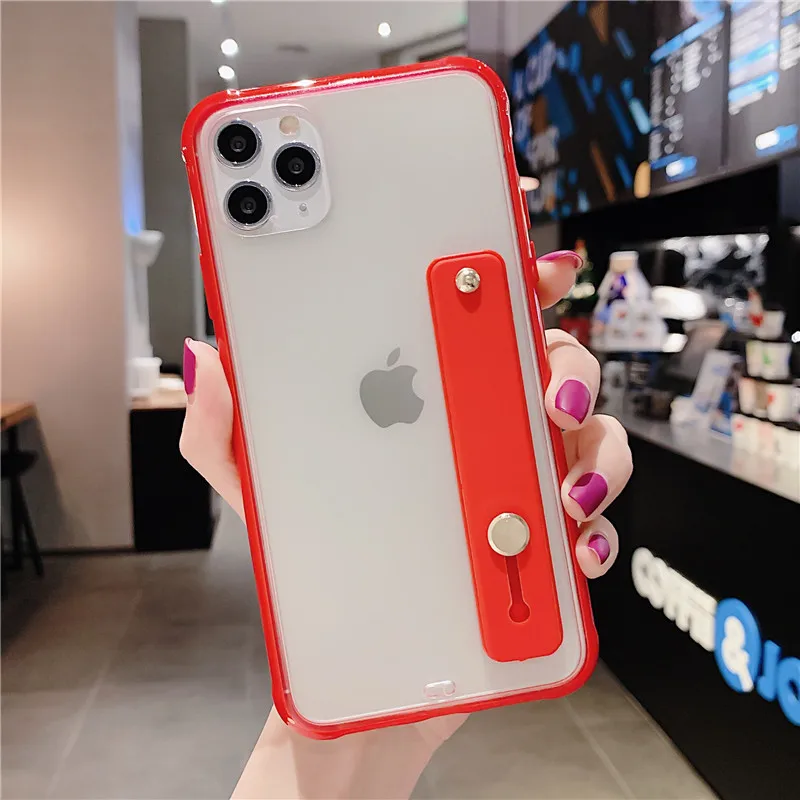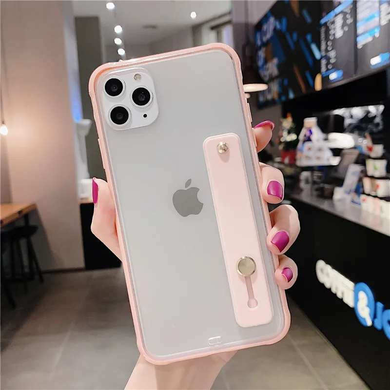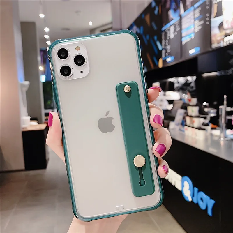 Funda de teléfono con parachoques a prueba de golpes para iPhone 13 Pro Max XS Max 6,1 pulgadas 6,5 pulgadas 6,7 pulgadas funda trasera con soporte transparente para correa para la muñeca