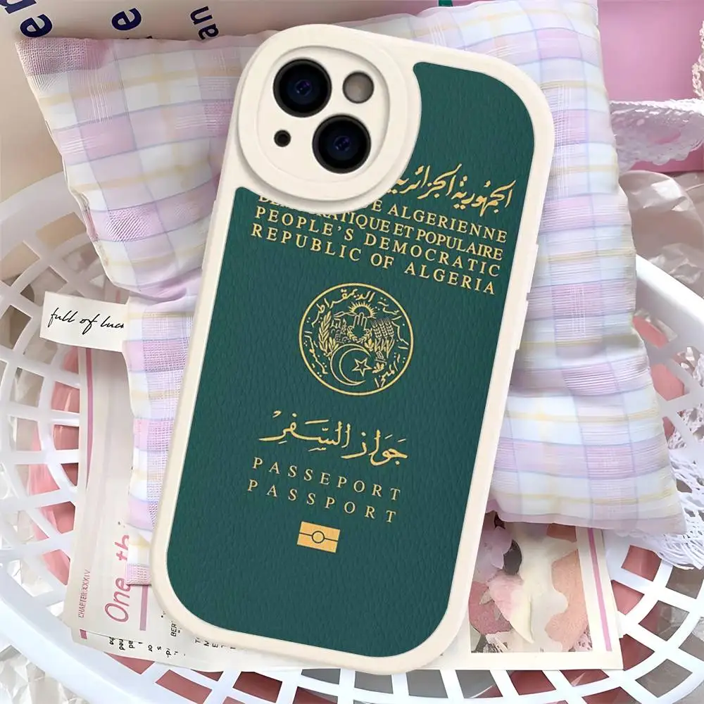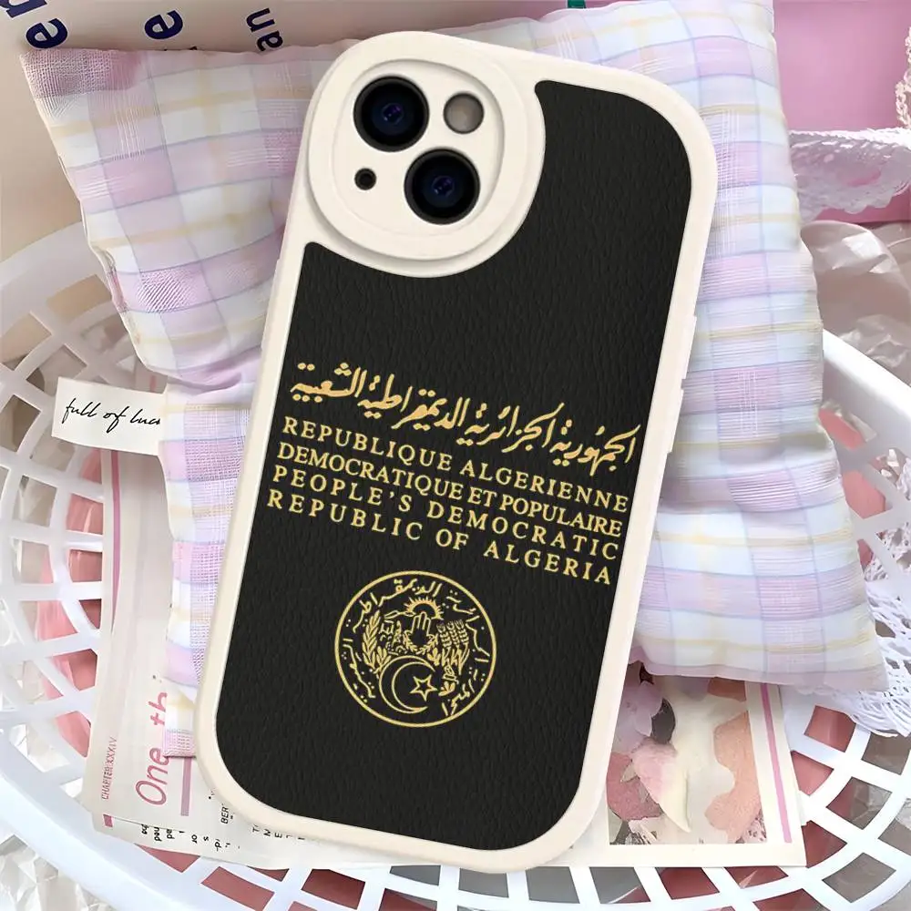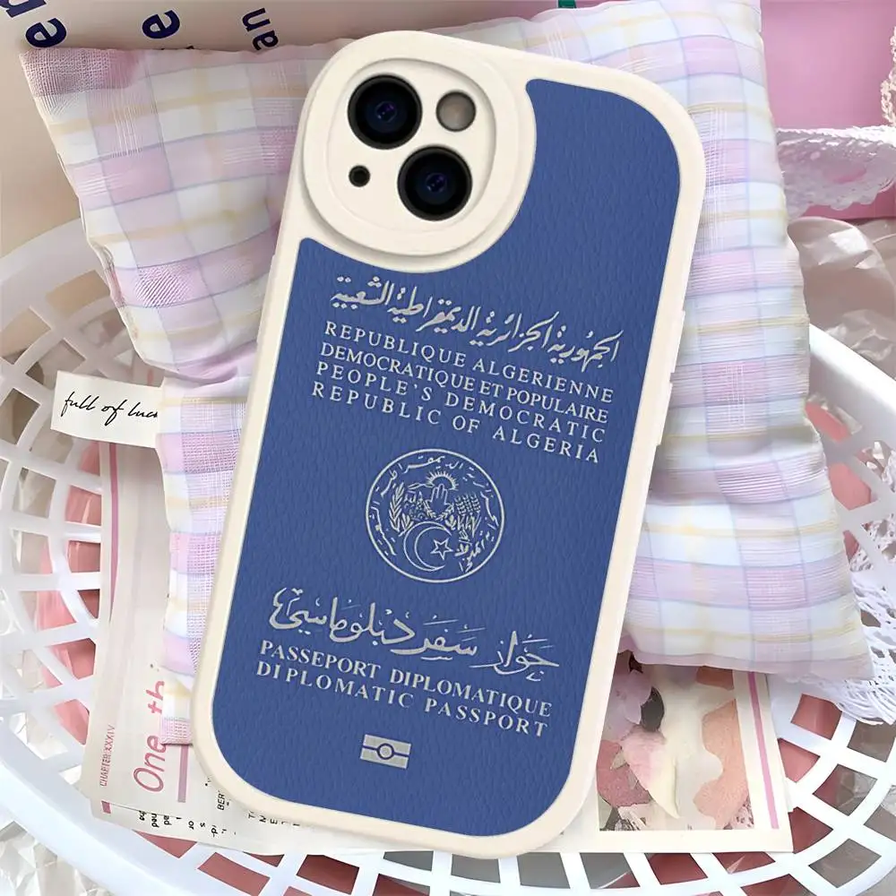 Funda de teléfono con pasaporte de Argelia de cuero duro para IPhone 16 15 14 13 12 Mini 11 14 Pro Max Xs X Xr 7 8 Plus Fundas