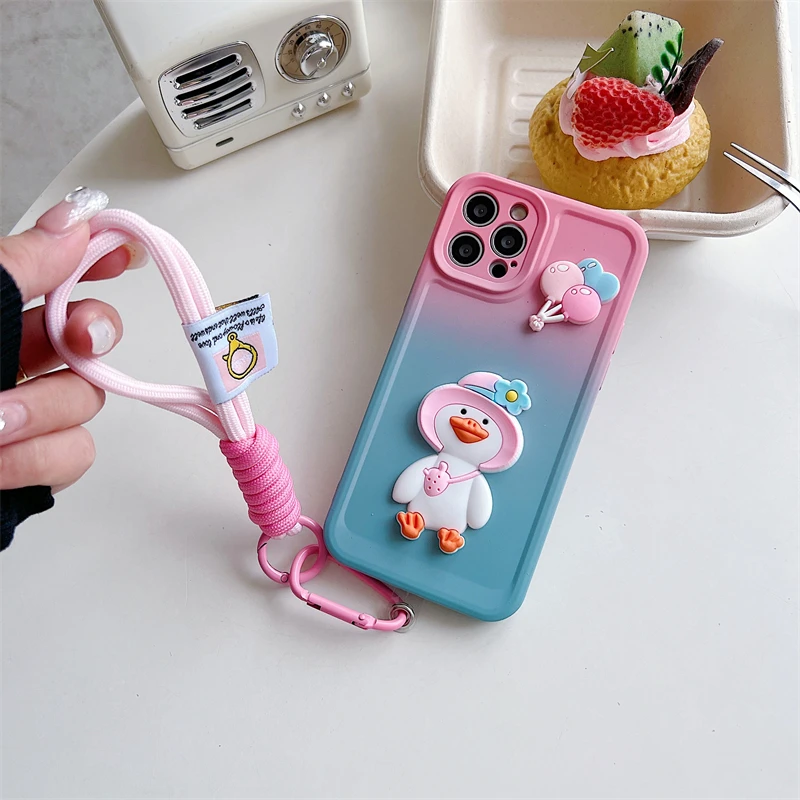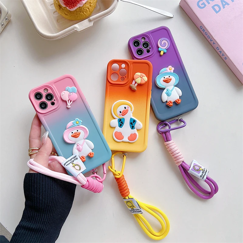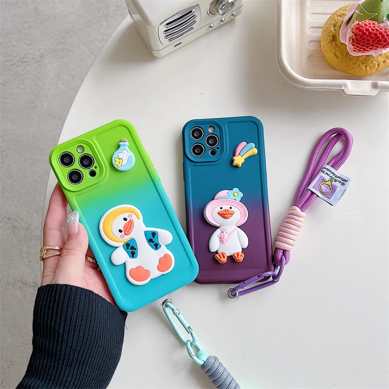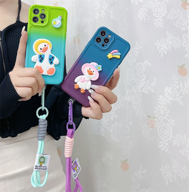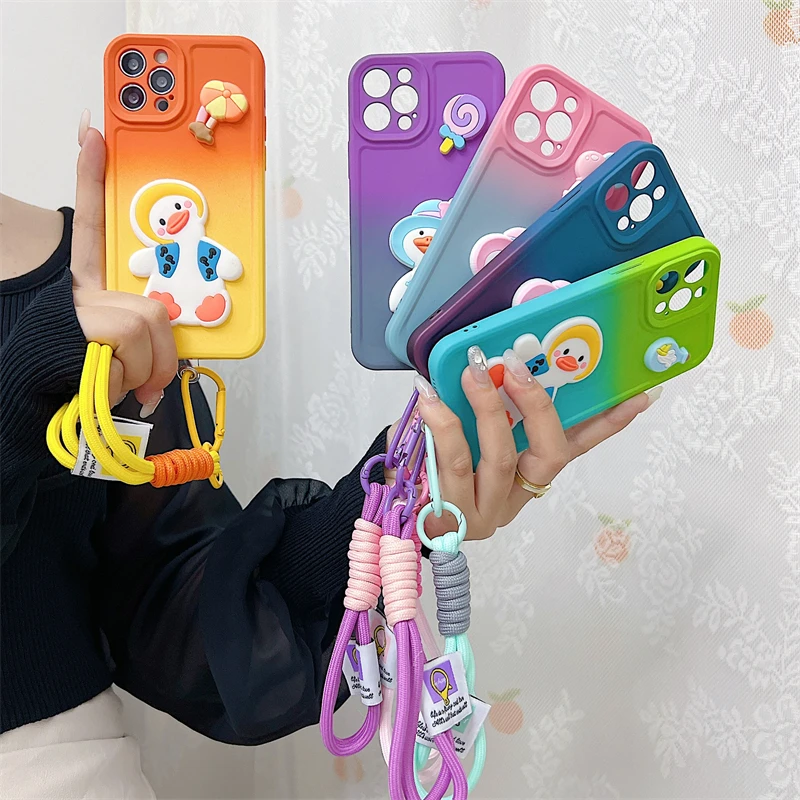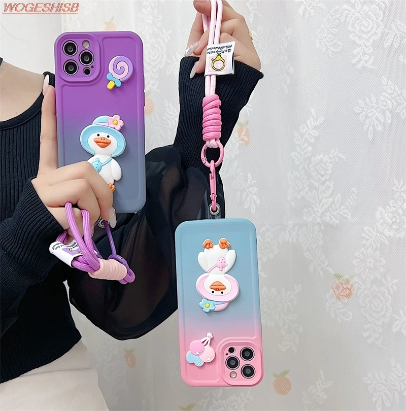 Comprar Funda de teléfono de pato de Color degradado para Xiaomi Mi 10T, 11 Lite, 11i, 11T, 11X, 12 Pro, 12S, 12T, 12X, 13, 14, correa de pulsera, Funda suave