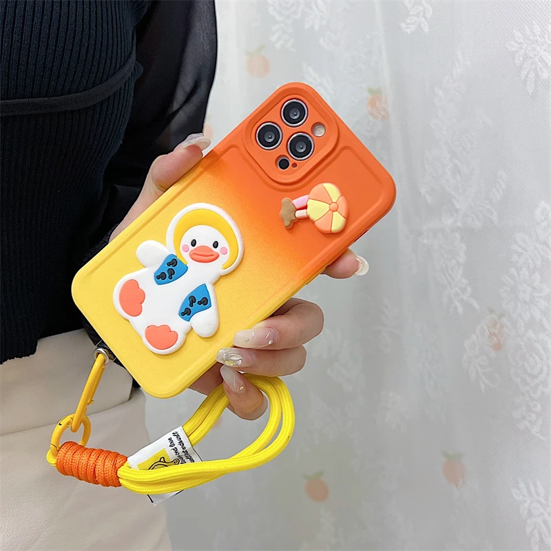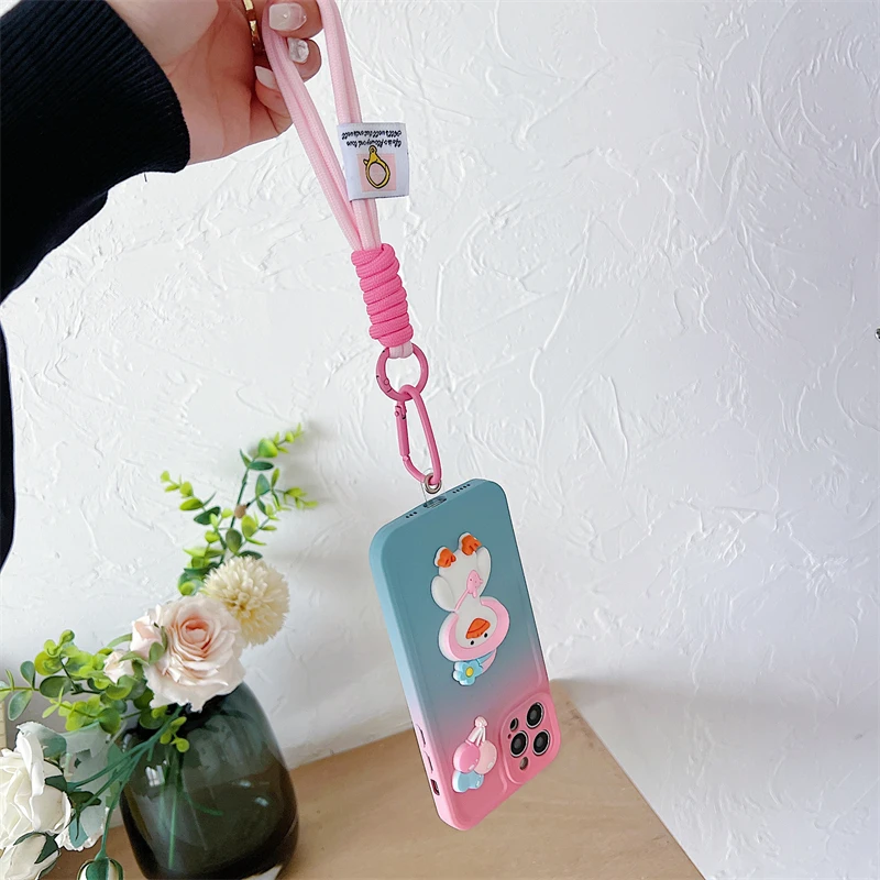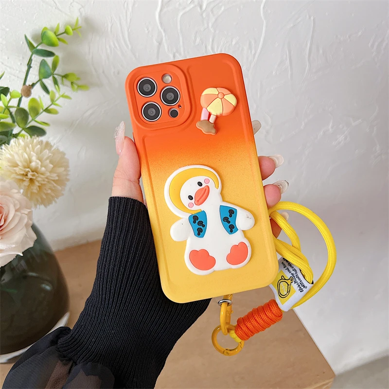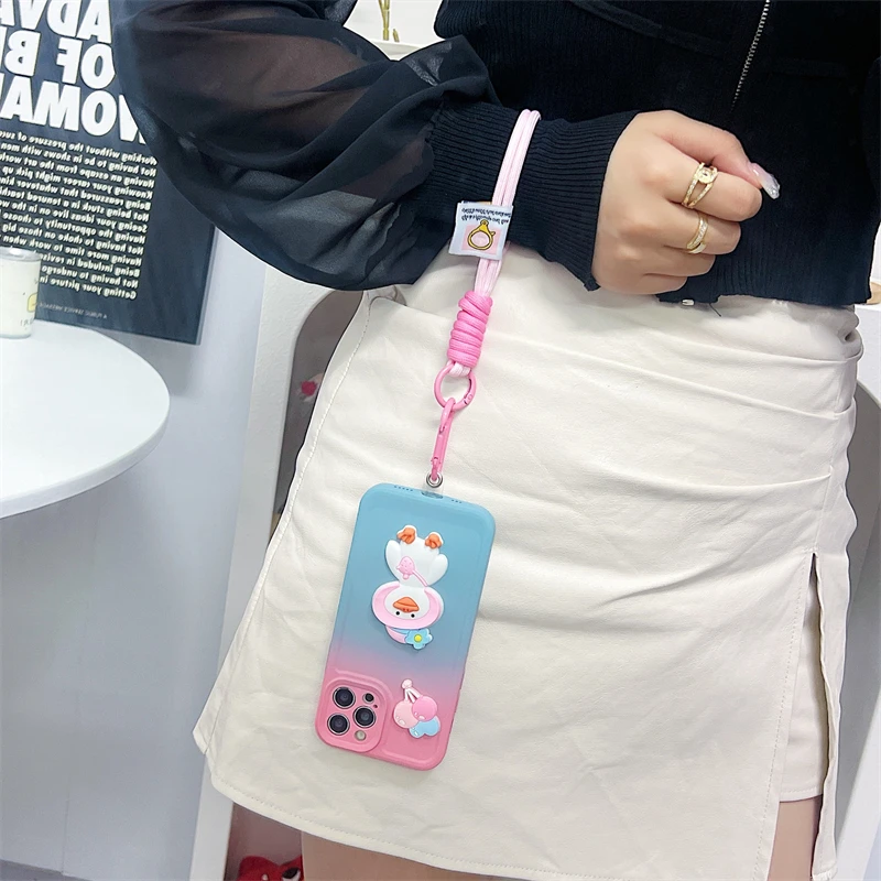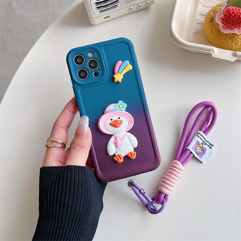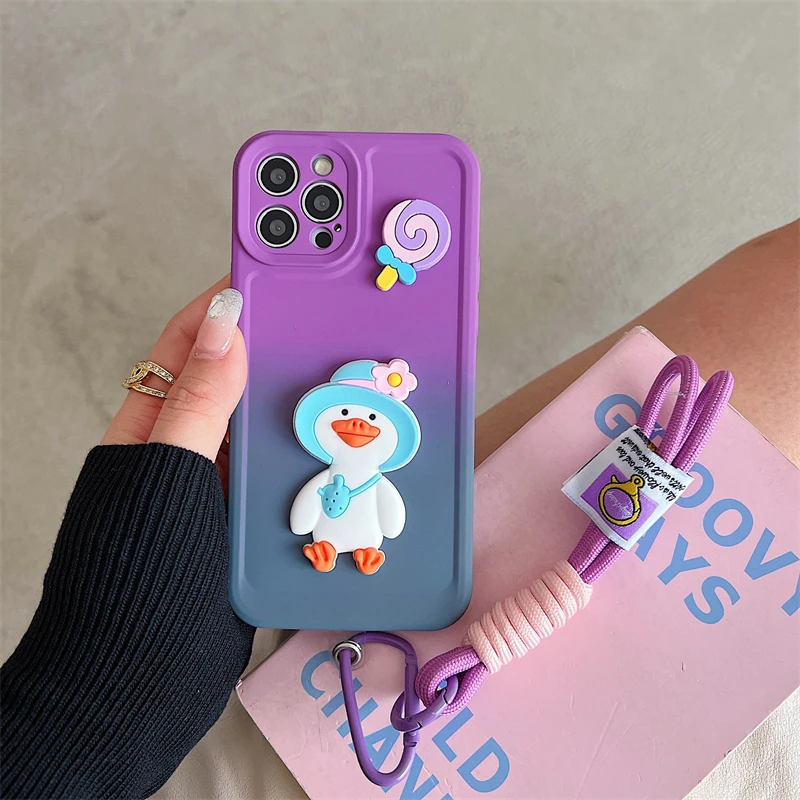Comprar Funda de teléfono de pato de Color degradado para Xiaomi Mi 10T, 11 Lite, 11i, 11T, 11X, 12 Pro, 12S, 12T, 12X, 13, 14, correa de pulsera, Funda suave